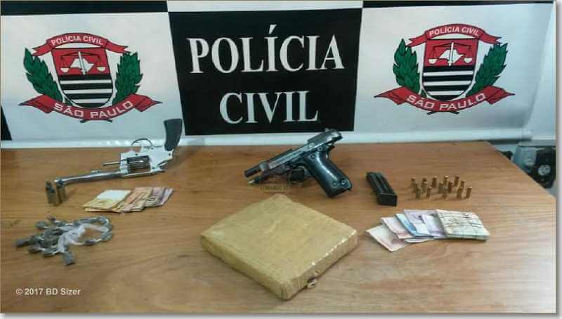 Fora presos por porte ilegal de arma de fogo Fabrício Alves, de 18 anos e Alisson Dolara Junior, 19 nos, prisão esta realizada pelo delegado da Delegacia de Investigações Gerais (DIG) . Todos estes foram autuados em flagrante. Os homens foram recolhidos ao Centro de Triagem e a mulher à Cadeia Feminina de Ribeirão Bonito. O menor foi entregue para a família.