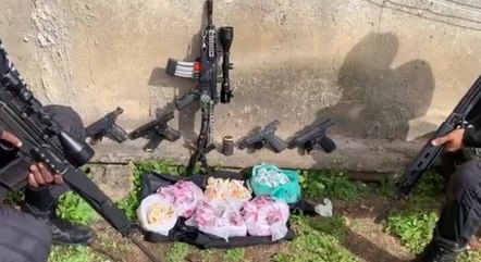 Na ação, outro fuzil calibre 5.56, quatro pistolas, uma granada e uma quantidade de drogas, ainda não contabilizada, foram apreendidos.