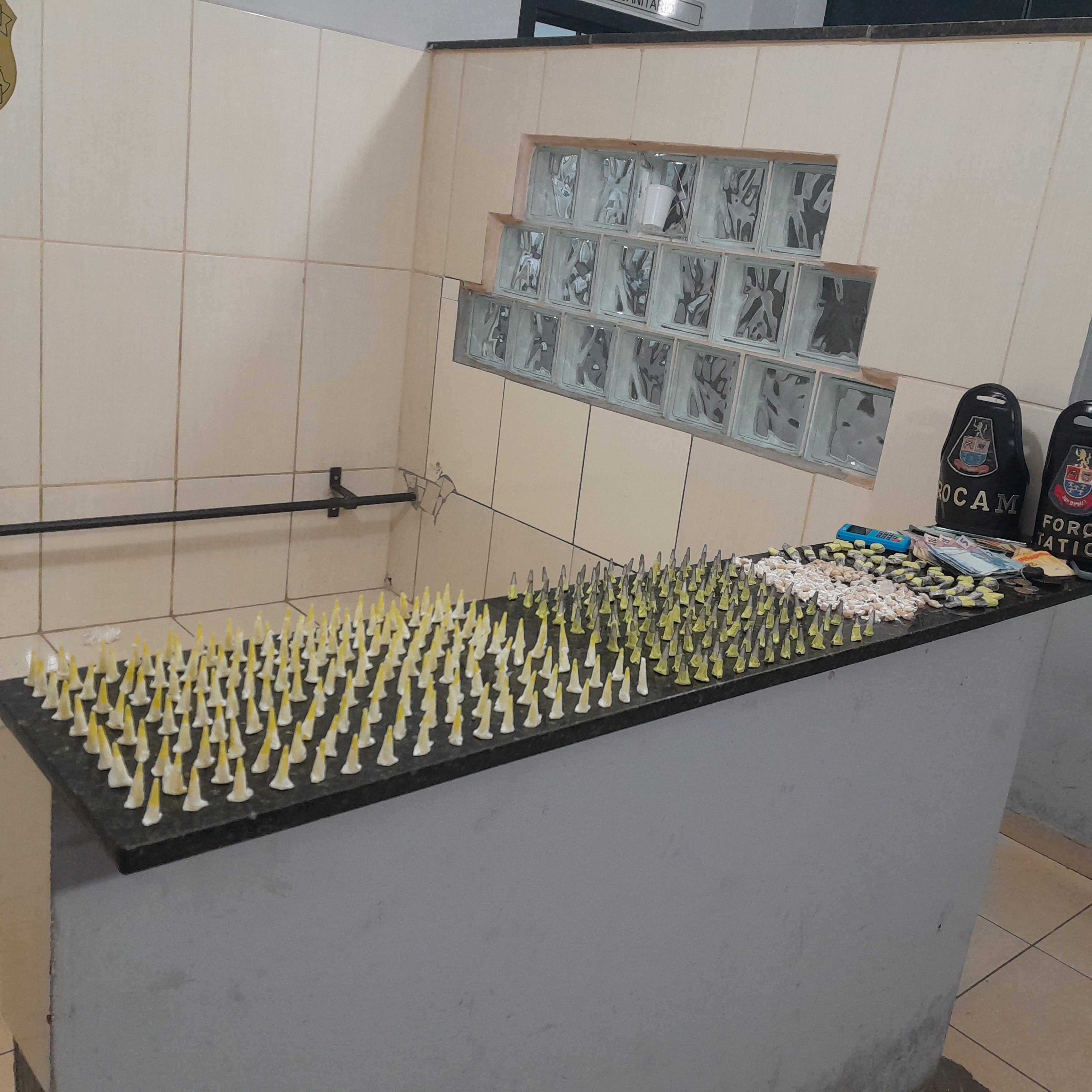 Policiais militares da Força Tática e ROCAM, estiveram nesta noite de sexta-feira, 24/02/2023, na Rua Benedito Barreto, jd. Cruzado, Ibaté/SP, onde detiveram 3 indivíduos e apreenderam drogas e dinheiro.