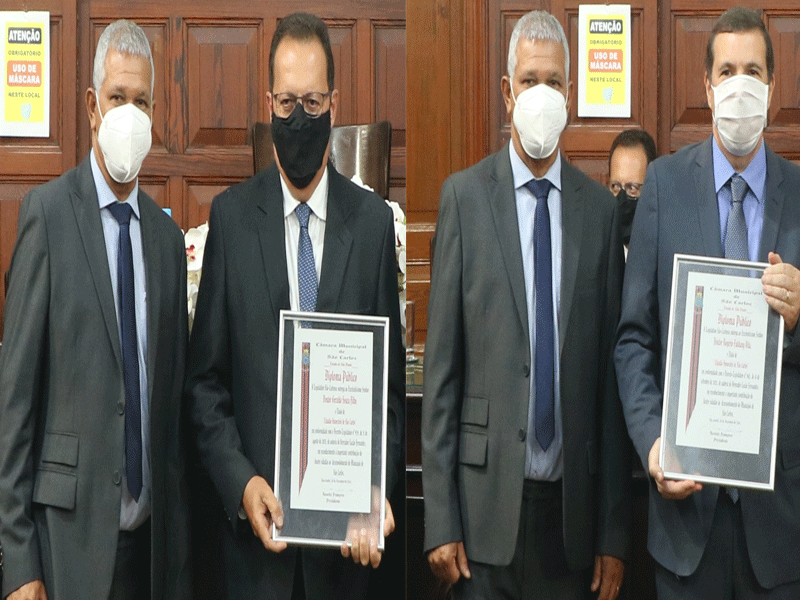 O vereador Lucão Fernandes (MDB), propositor dos decretos legislativos que concederam títulos de cidadania honorária de São Carlos aos delegados de Polícia Geraldo Souza Filho e Rogério Fakhany Vita destacou a importância de “valorizar e reconhecer o trabalho e a coragem de policiais que cotidianamente arriscam a própria vida para atuar em defesa da proteção da comunidade e da paz social”. “O empenho pessoal de policiais abnegados muito contribui para o alcance de bons resultados na segurança pública no município e no estado”.