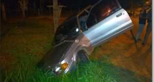 Carro cai na vala e é abandonado
