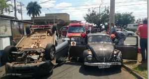 Carro capota após colisão