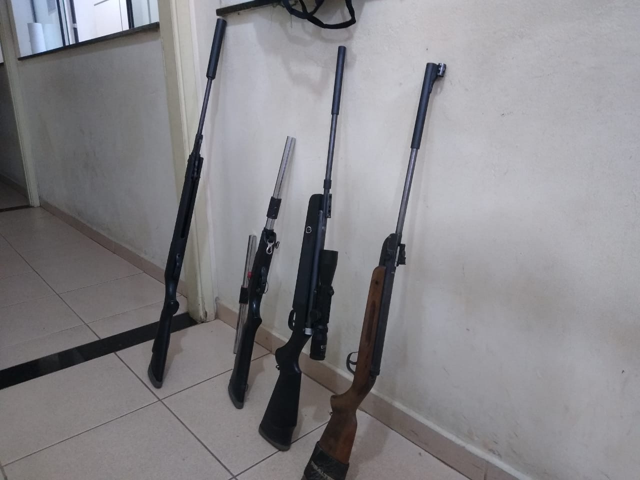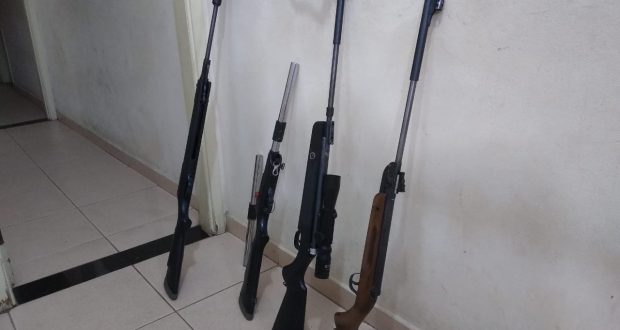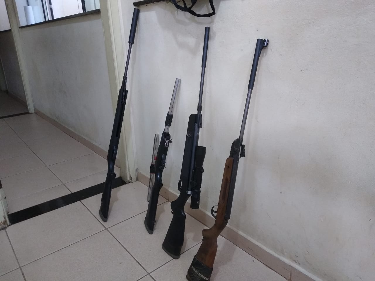 Segundo informações, policiais estavam em patrulhamento, quando visualizaram um veículo Mercedes, placas de Santa Bárbara do Oeste. Quando os policias estavam no local, um homem de 54 e seu filho de 18. No carro foram localizadas duas espingardas. Os averiguados falaram que as armas eram para defesa própria. Depois acabaram informando que tinham mais armas de fogo na casa deles no bairro Jd. Embaré. Os PMs foram até ao local e apreenderam mais duas espingardas e munições. Pai e filho foram encaminhados ao Plantão Policial, mas até o fechamento desta matéria a situação não havia sido definida.