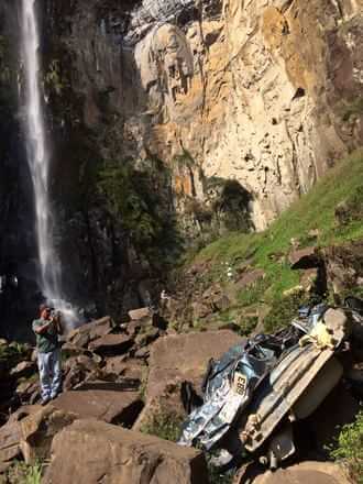 Imagem aérea mostra a Cascata do Avental, de 100 m de altura, em Urubici (SC), de onde o rapaz atirou o próprio carro com os dois filhos pequenos no banco de trás no último sábado (9-09-2017).