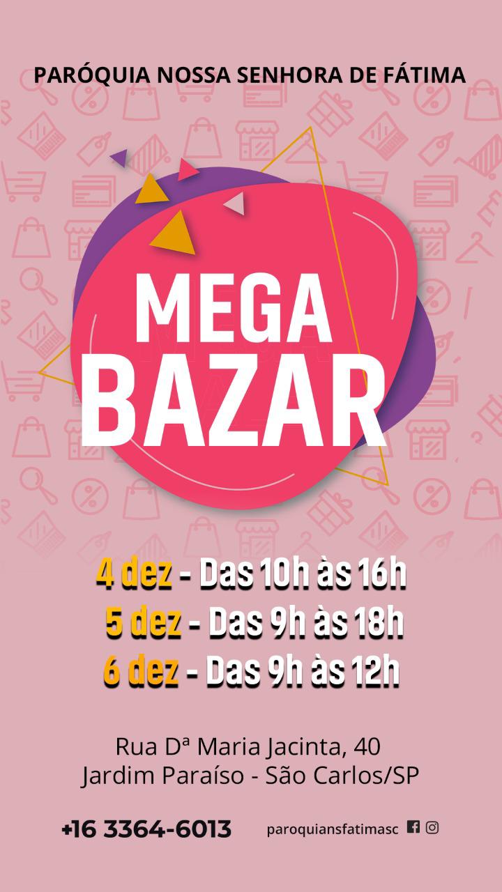 NOS DIAS 4, 5 E 6 DE DEZEMBRO A PARÓQUIA NOSSA SENHORA DE FÁTIMA REALIZARÁ O MEGA BAZAR!