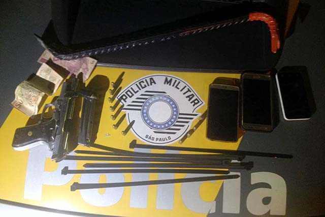 Diligências foram realizadas para localizar o objeto que havia sido jogado fora e uma arma de fogo, tipo pistola, marca Taurus, calibre 7,65mm foi encontrada. A arma, que estava com a numeração raspada e carregada com 11 cartuchos intactos, foi apreendida. Um dos suspeitos estava sendo procurado pela Justiça depois de condenado pela prática de roubo.