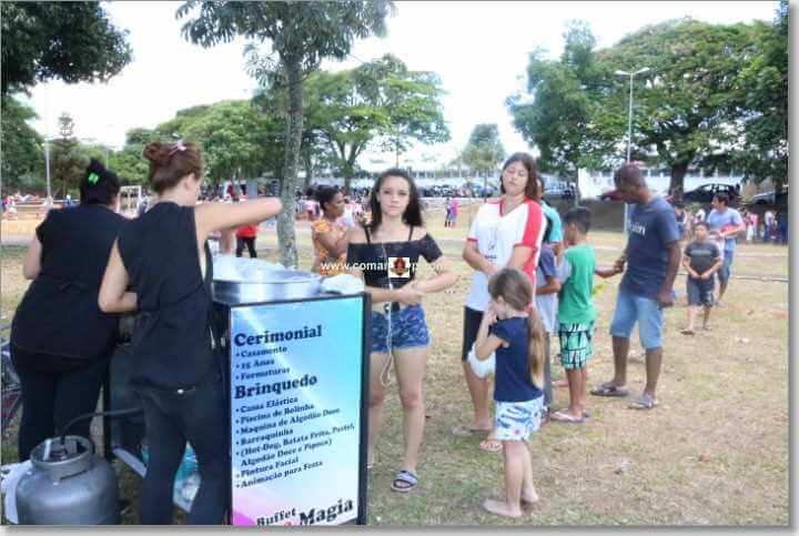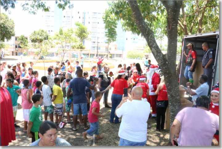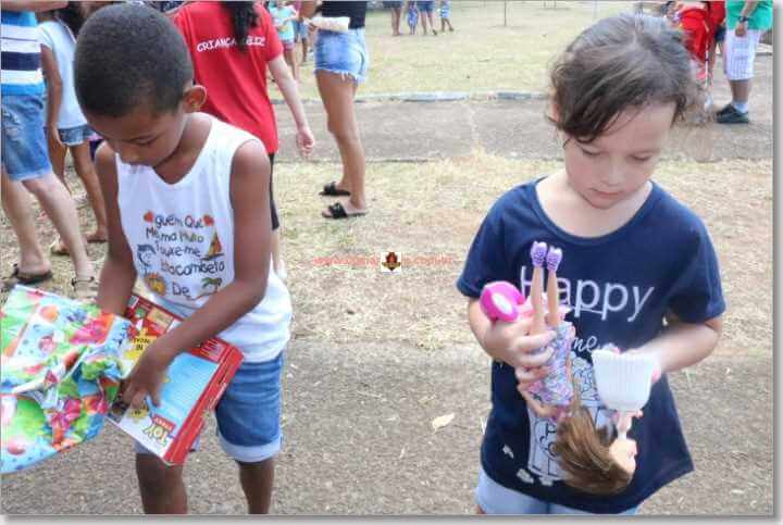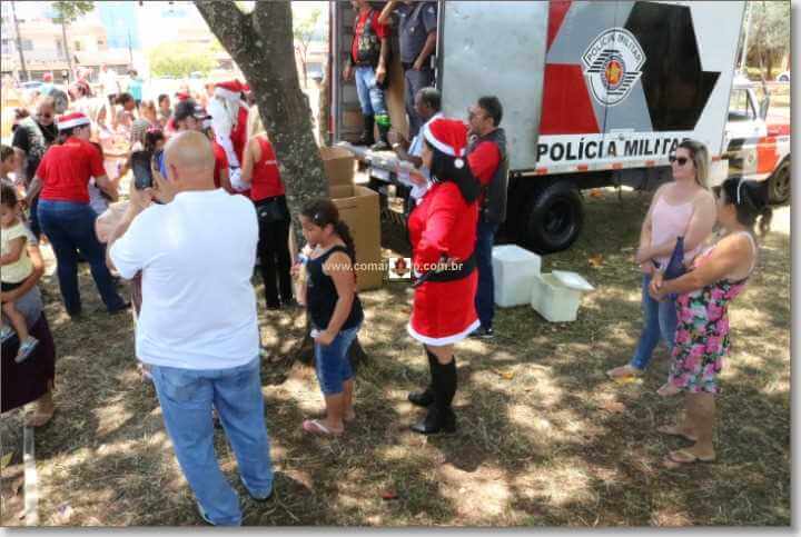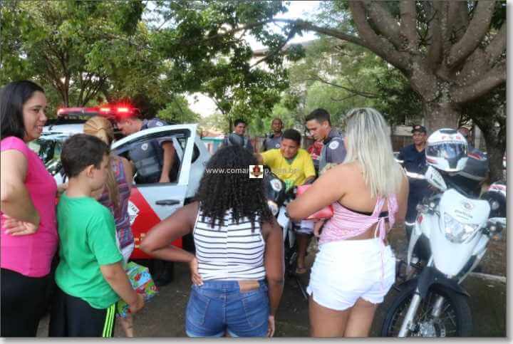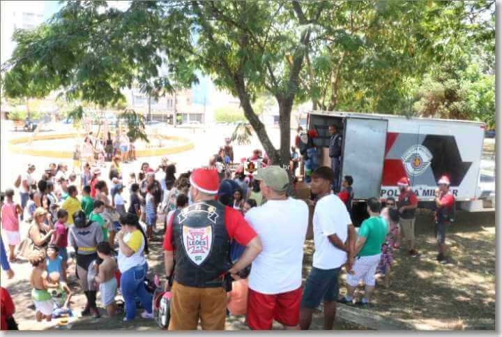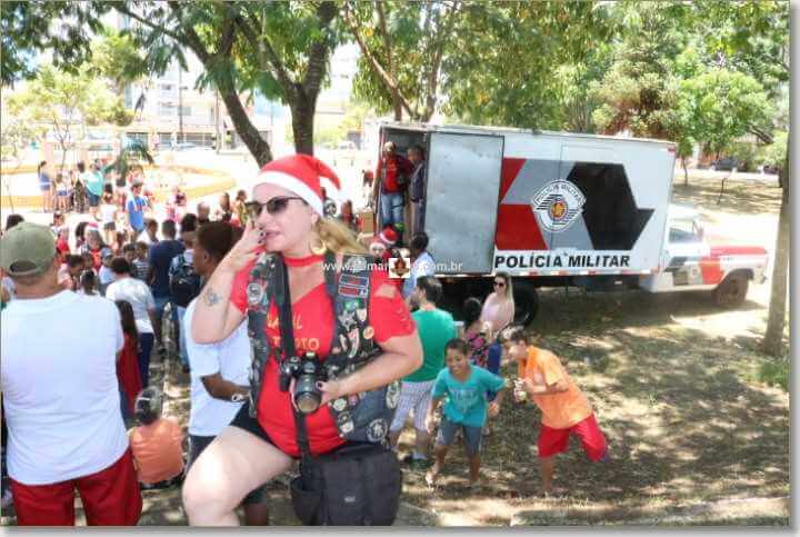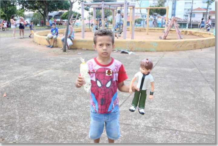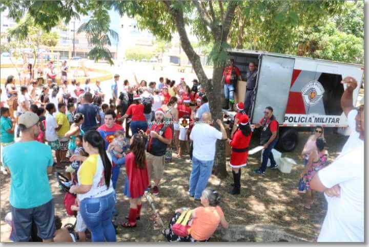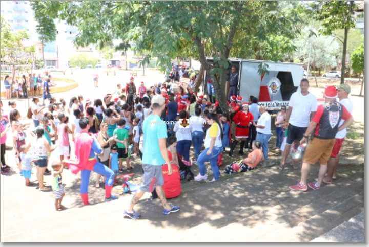 Desta vez a festa ocorreu na praça defronte a CIA da Polícia Militar situada na rua Santos Dumont, bairro de Vila Marina. Há sete anos uma jovem teve a ideia de ajudar fazer crianças felizes. E começou arrecadar brinquedos e distribuí-los para crianças. Hoje a festa começou por volta das 13:30. E em poucos minutos filas se formaram na praça. O Corpo de Bombeiros, Polícia Militar, “Motolâncias” do SAMU, entre outros órgãos estevem também no local e as crianças adoraram. Foram entregues cerca de 800 brinquedos, entre novos e usados, pipoca, algodão doce, balas e pirulitos. Karina Carlos, coordenadora da festa conversou com nossa equipe e agradeceu todos que de uma forma ou de outra contribuíram para a felicidades das crianças.