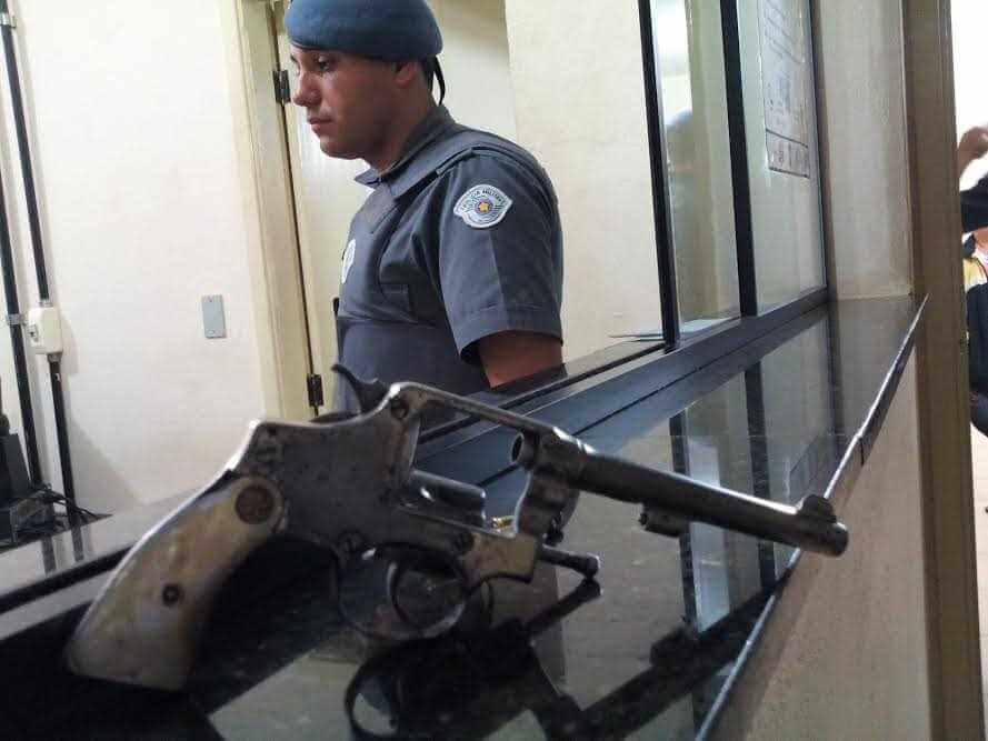Com o averiguado foi localizado a arma. Ele foi conduzido ao Plantão Policial, onde ficou à disposição da autoridade.