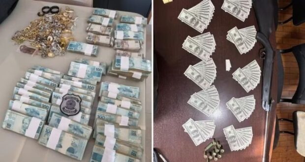 Entre os itens apreendidos, estão dólares, armas de fogo, joias, veículos de alto padrão, além de celulares, computadores e documentos que podem auxiliar na apuração do caso.