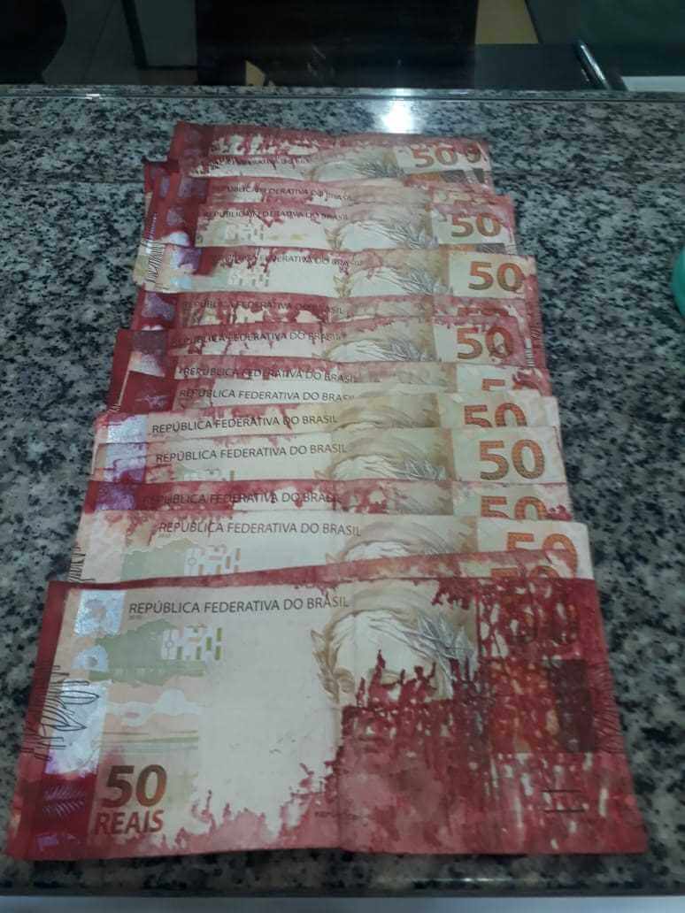 Segundo informações, a PM recebeu que indivíduos em um Gol da cor branca estariam tentando trocar notas manchadas de vermelho em um Gol. O veículo foi abordado no cruzamento da Rua Gastão Vieira, com Afonso Botelho de Abreu Sampaio. Com 1 dos indivíduos foi localizado uma nota de R$ 50,00. Equipes diligenciaram até a residência do mesmo no bairro Cidade Aracy, local este onde localizaram várias notas também manchadas e uma arma de fogo. A dupla foi encaminhada ao D.P, mas até o fechamento desta matéria, a situação não havia sido definida.