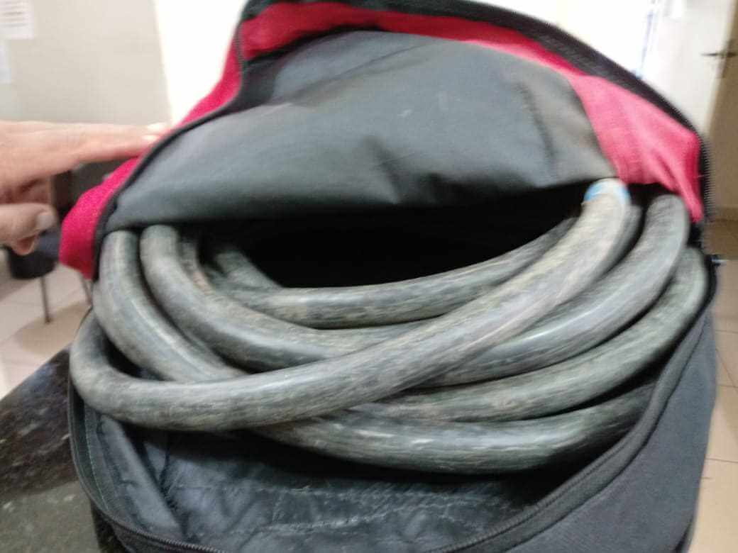 Segundo informações, M. H. A. O,  35 anos,  foi abordado pelos policiais militares cabo Villar e soldado Vale.  Ele estava carregando uma bolsa nas costas. No  interior da bolsa havia aproximadamente 20 metros de cabo de cobre.  Este comunicou aos combatentes que havia localizado em uma caçamba de entulho. Como a historia do meliante não colou ele foi conduzido ao  Plantão Policial onde o delegado, Dr.  Mauricio António Dotta e Silva tomou o conhecimento,  porém  pelo fato de não ter nenhuma vitima no momento,  não foi possível fazer o flagrante. O averiguado foi liberado.