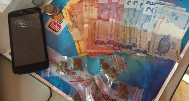 Segundo informações, a PM abordou o suspeito e consigo localizou uma  porção de maconha e R$104,90.