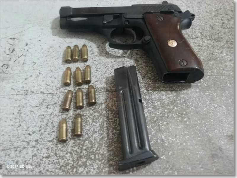 Segundo informações, o Centro de Operações da Polícia Militar (COPOM) recebeu uma denúncia anônima que indivíduos iriam assaltar um supermercado situado na rua Antônio Blanco. O sargento Caon  e cabo Fernando Cesar da modalidade Delegada, foram para a rua Francisca Stela, onde fizeram contato com uma mulher, mãe de um dos homens que segundo a PM, iriam assaltar o supermercado. A mulher franqueou a entrada dos policiais e uma pistola 7,65, municiada com 11 munições intactas foi localizada. Ainda de acordo com a PM, a arma estava escondida dentro de uma sapateira. Francinil da Silva Machado, de 20 anos foi detido e encaminhado ao 1º D.P,  e recolhido ao Centro de Triagem pelo delegadoDr. Mauricio Antônio Dotta e Silva.