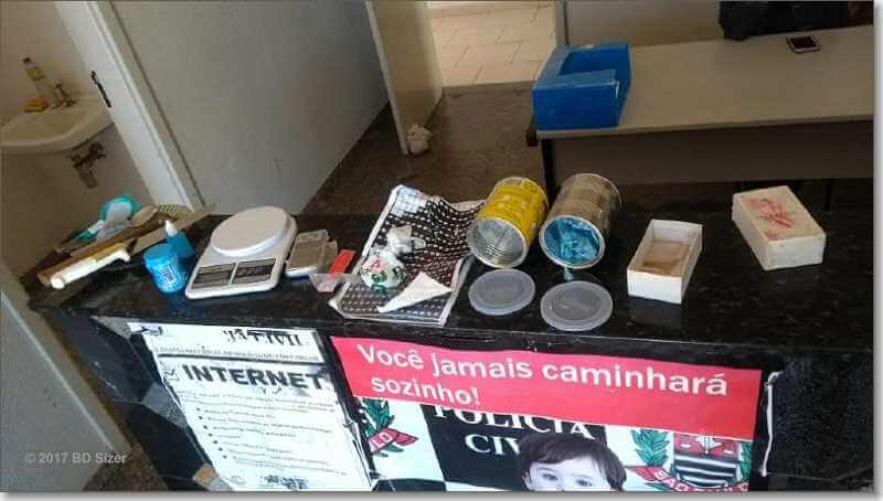 Segundo informações, os cabos J-Batista e Gomides estavam em patrulhamento preventivo quando avistaram um sujeito descendo de um carro e com uma mochila nas costas. Os policiais tinham conhecimento que este carro é de um homem procurado pela polícia.  Segundo a PM,  dentro da mochila foram localizados 83 pinos de cocaína, porções de crack, faca, lata, peneira, balança de precisão, entre outros objetos.  Robert Gomes da Silva, de 31 anos, foi encaminhado à Delegacia da Polícia Civil, autuado em flagrante por tráfico de drogas e recolhido ao Centro de Triagem de São Carlos.