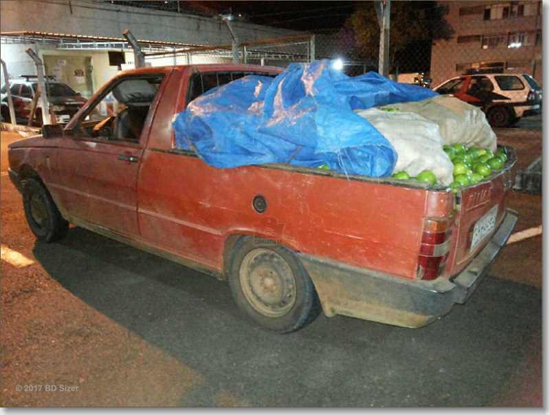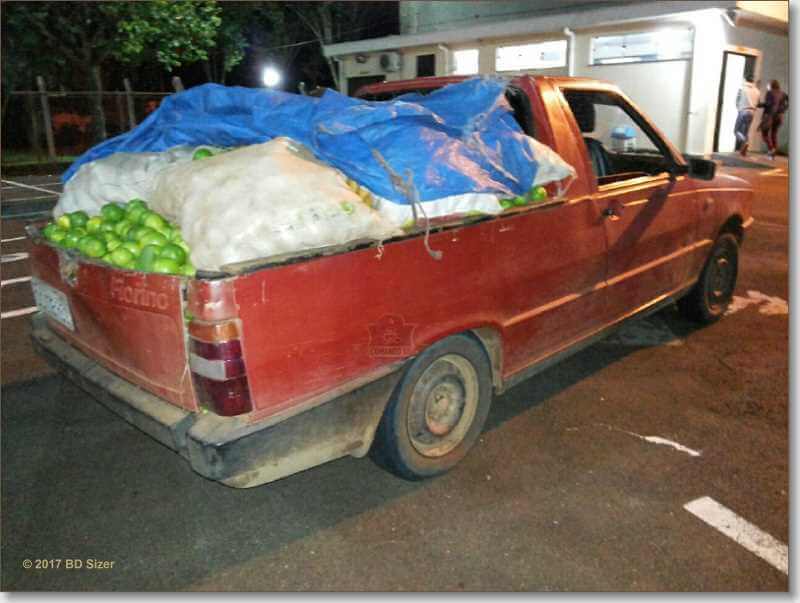 Segundo boletim de ocorrência registrado no Plantão Policial de São Carlos, por volta das 20:15, o Centro de Operações da Polícia Militar (COPOM) foi informado de um furto de laranjas ocorrido na fazenda Santo Ignácio de Leiola e que os ladrões estavam no sentido São Carlos. Os policiais, Villar, Claudinei e Frisene foram para a rodovia e com apoio de demais viaturas abordaram o Fiorino. Na carroceria estava cerca de 20 caixas de laranjas. Antônio J. S, de 40 anos, Fernando Giacomini de Oliveira, 24 e Aldemir Francisco da Costa, de 34, confessaram o furto. Representantes da fazenda foram para a delegacia.