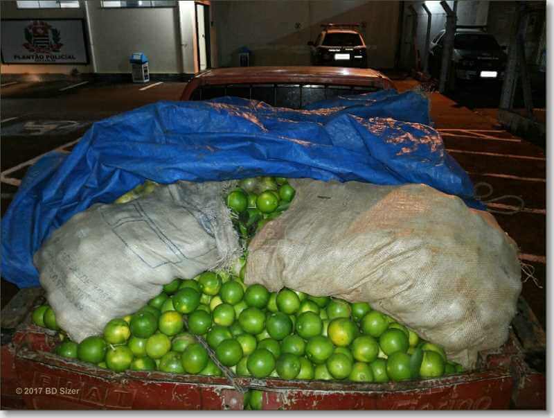 Três homens foram detidos nesta noite desta segunda-feira, 13-03-2017, com um carro lotado de laranjas, que segundo a PM, foram furtadas. Os indivíduos foram abordados no km 05 rodovia Domingos Inocentini, estrada do Broa.