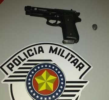 Três jovens foram detidos com uma réplica de arma de fogo na tarde de sábado, 28-05-2017, na rua Dona Alexandrina, região central de São Carlos-SP.