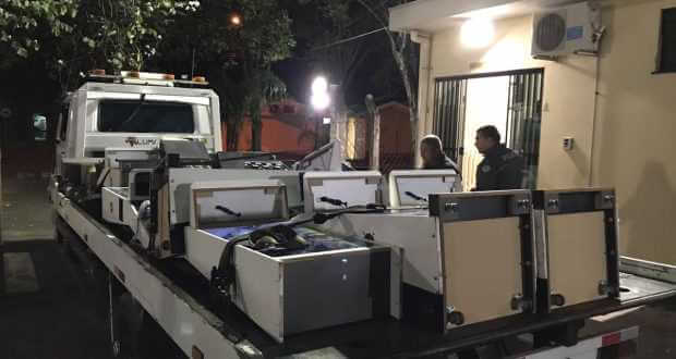 Na noite de segunda-feira, 08-07-2019, a PM de São Carlos-SP após receber denúncia anônima deteve “gatão” e apreendeu 22 máquinas de jogo na rua São Paulo.