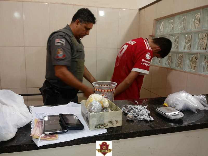 Após diversas denúncias de tráfico de drogas, a PM deteve um jovem nesta noite de terça-feira, 20 de fevereiro de 2018, na rua Nelson Rios, bairro Santa Felícia , São Carlos-SP.