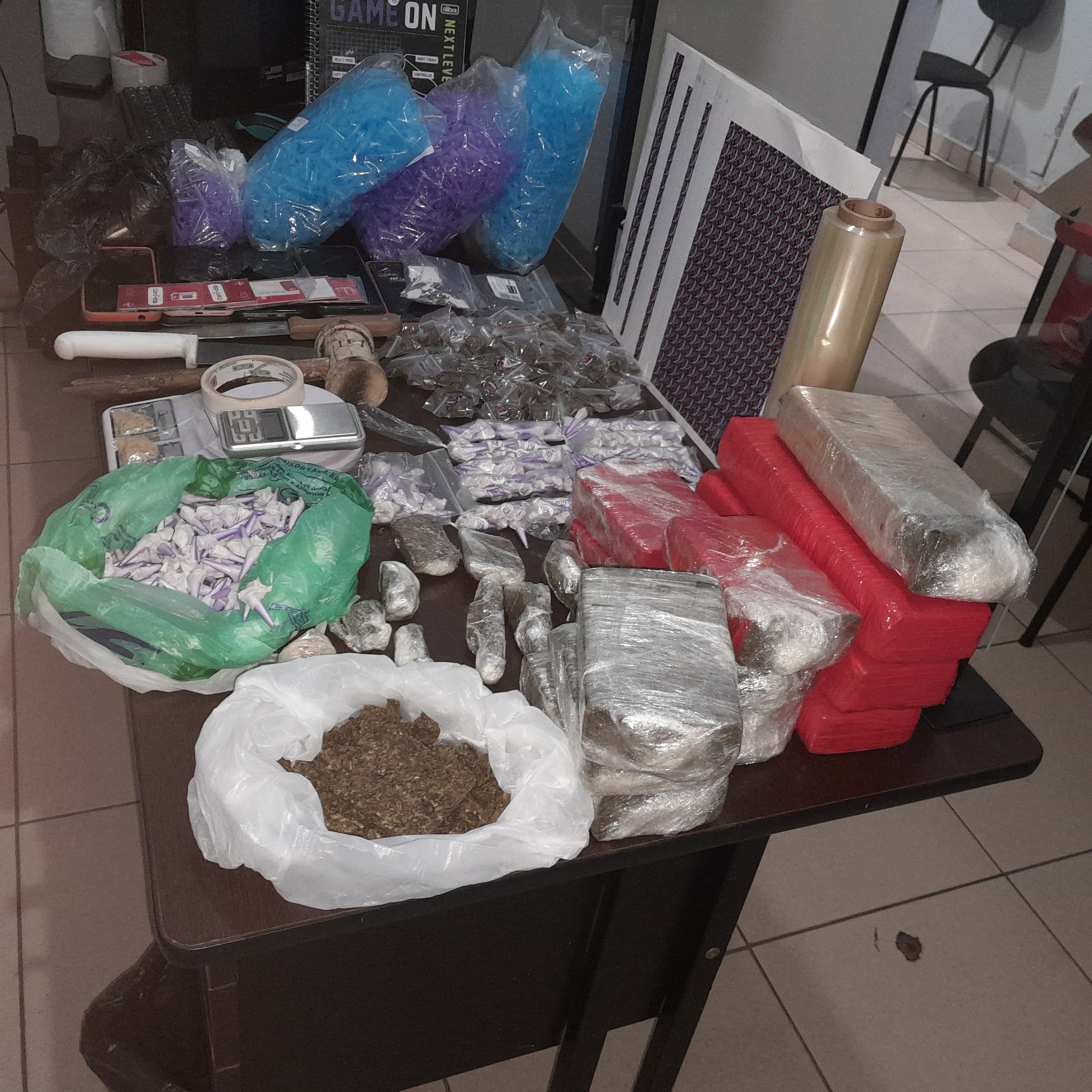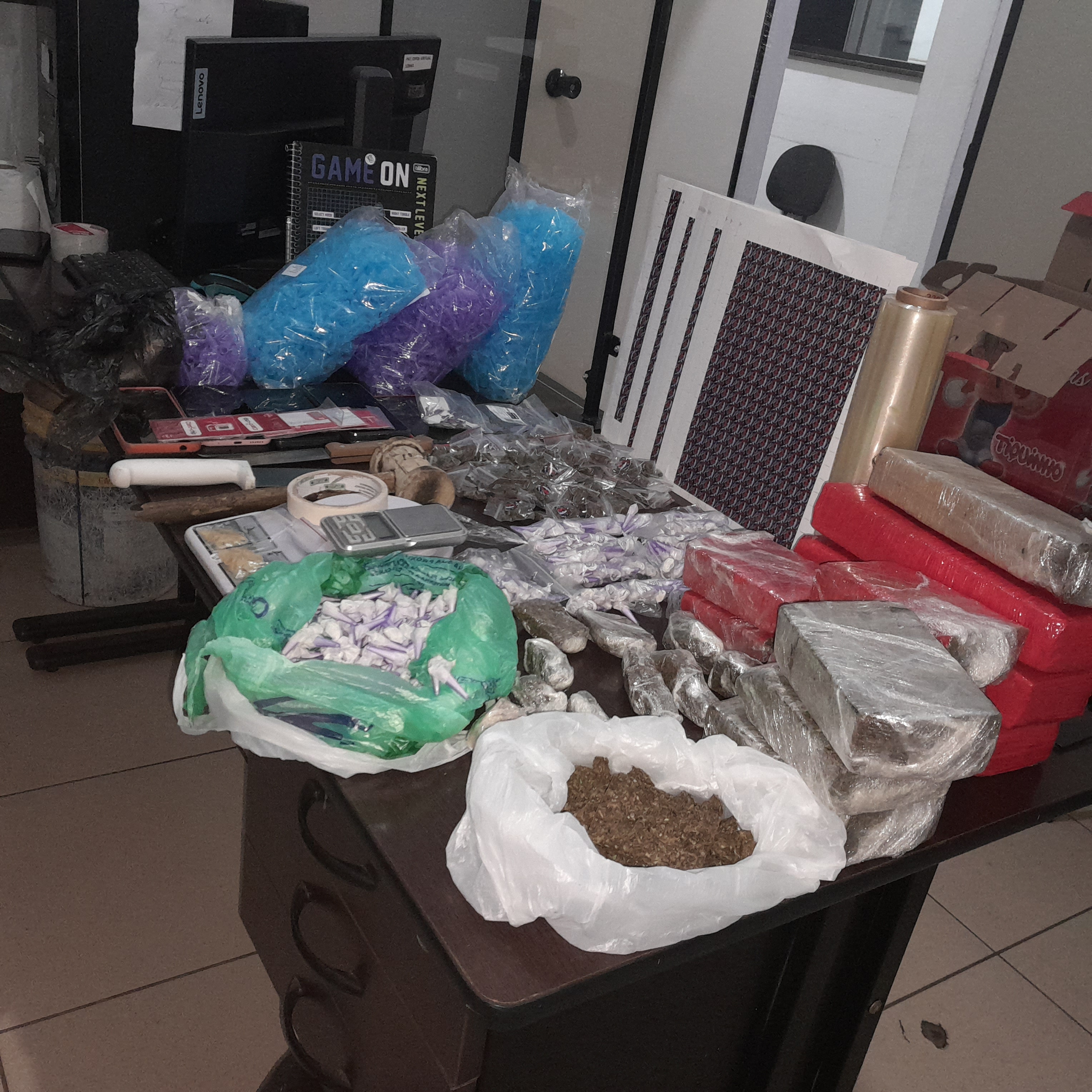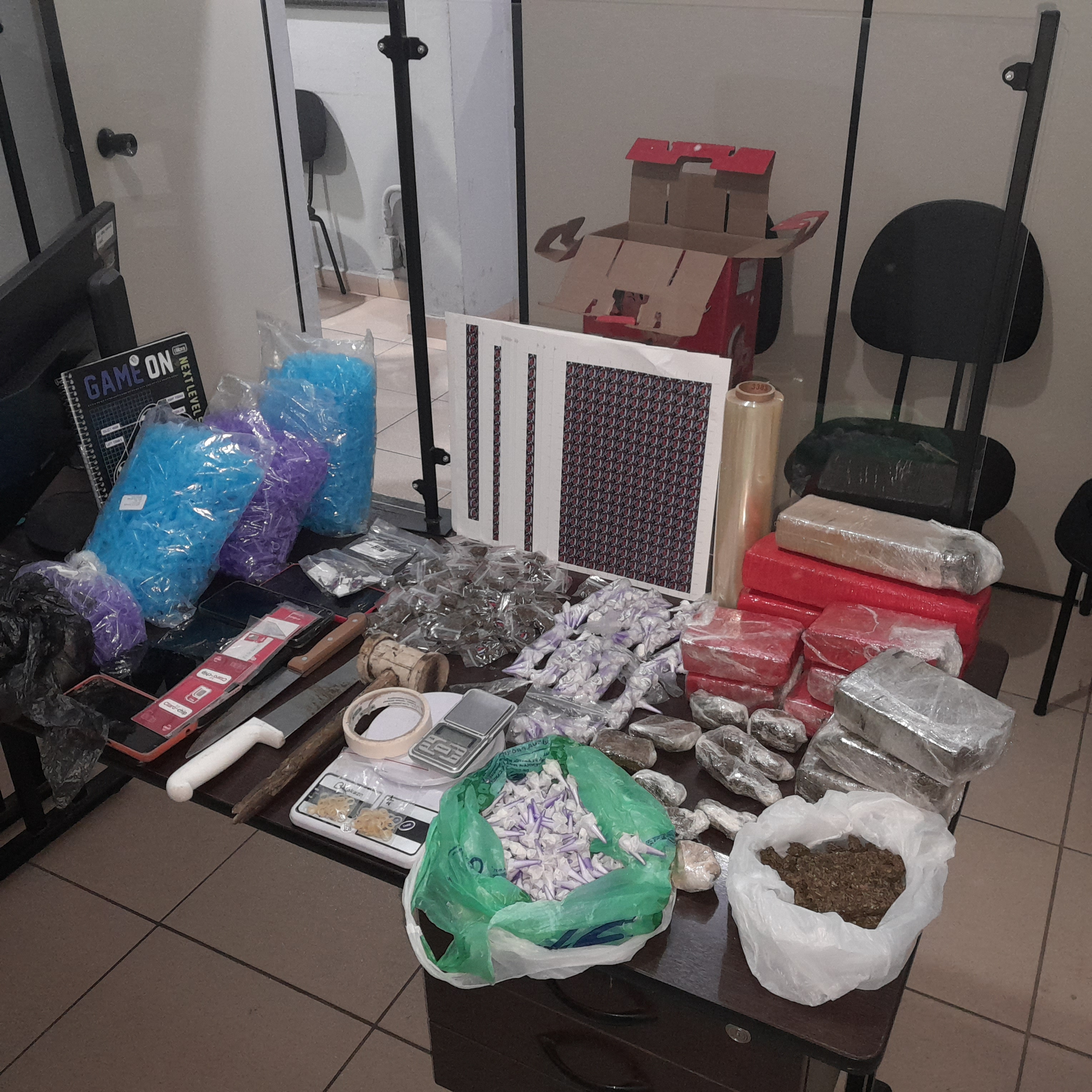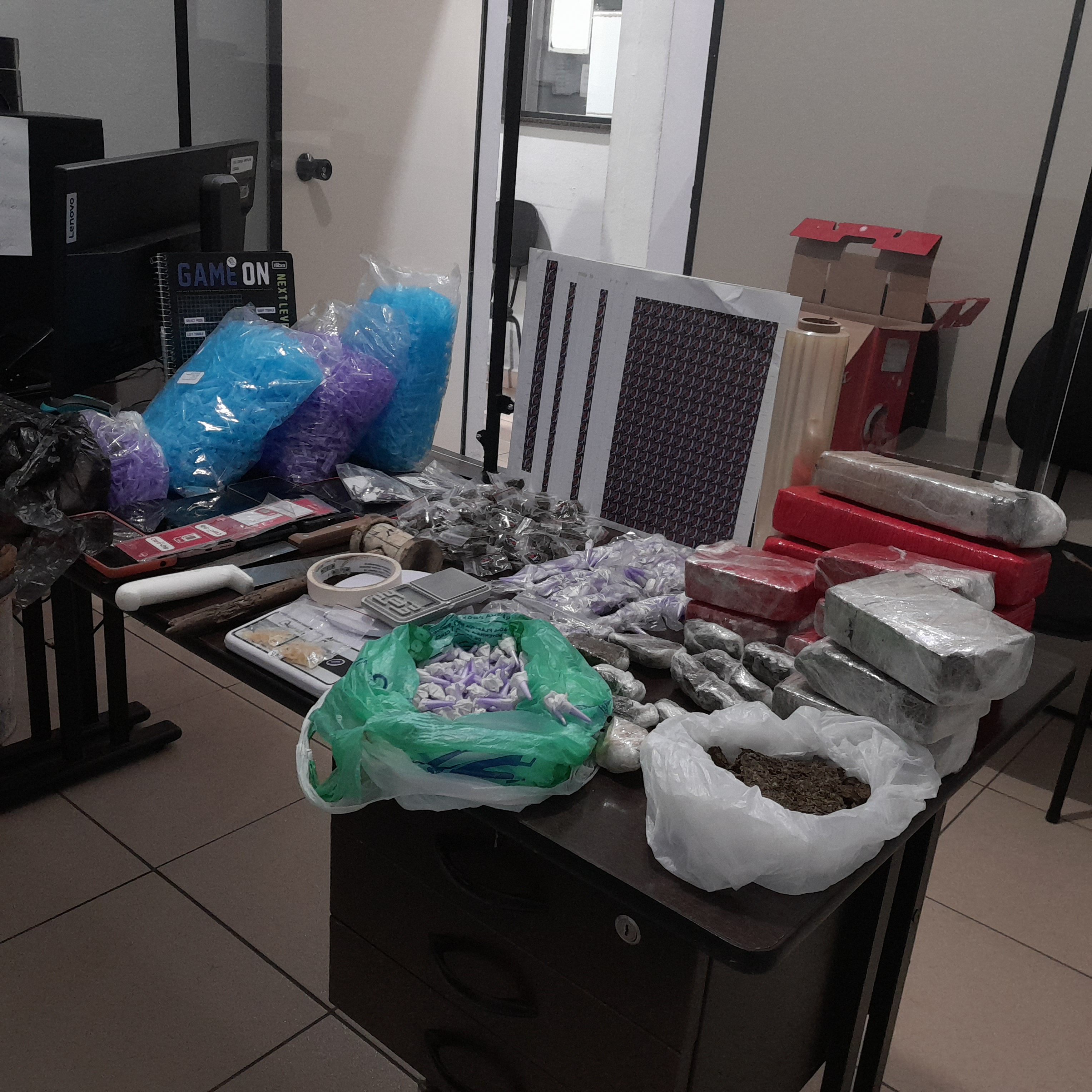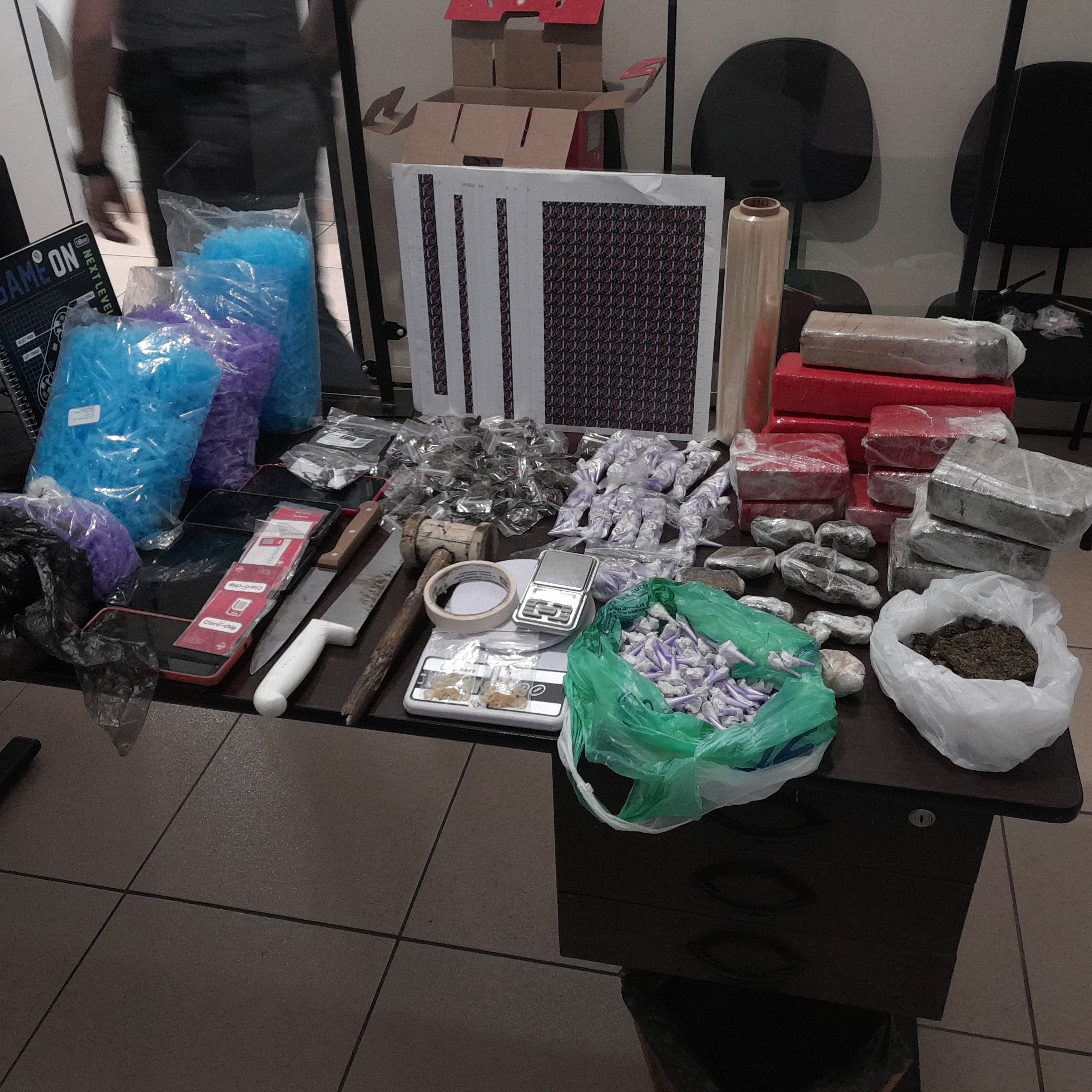 Segundo informações, a PM estava em patrulhamento, quando avistou um indivíduo de 26 anos, comprando cocaína de um segundo meliante. Os policiais realizaram a abordagem e encontraram os pinos de cocaína em poder do averiguado. Dois irmãos, ambos maiores de idade, que teriam tentado fugir, foram detidos. Na casa foram localizados 12 tijolos de maconha, 10 porções menores da mesma droga, pinos de cocaína, entre outros. A ocorrência foi encaminhada para a Central de Polícia Judiciária, onde está sendo apresentada.