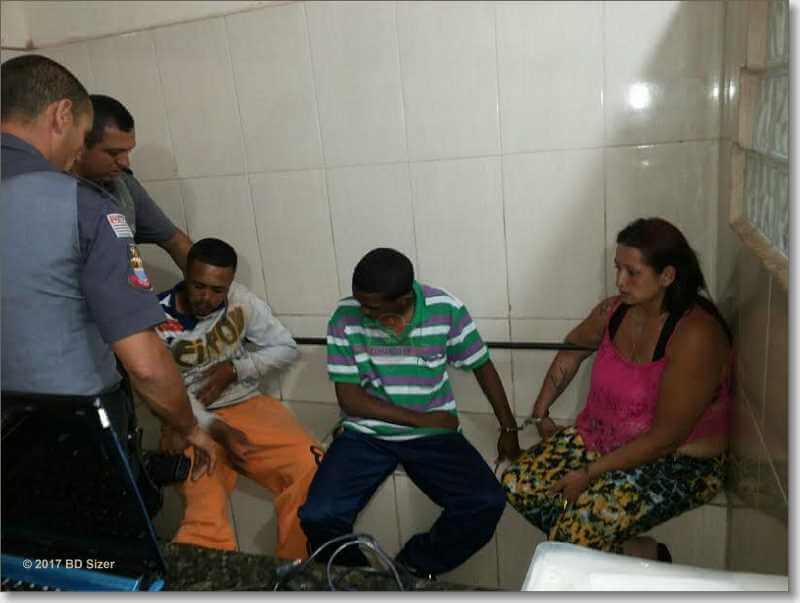 Todos foram encaminhados ao Plantão Policial e quando lá chegaram foram surgindo vítimas de tentativa de roubo e roubo. Duas estudantes relataram que estavam próximas ao Terminal Rodoviário quando essa mesma quadrilha tentou praticar o roubo. Os marginais estavam com arma de fogo, mas uma das vítimas saiu correndo e gritando e eles não conseguiram roubar. Depois uma outra vítima também compareceu ao Plantão Policial e reconheceu os marginais e disse que eles haviam lhe assaltado minutos antes na região da companhia da PM e do Plantão Policial. Dentro do carro a PM encontrou todos os produtos roubados. Daniele e Lucas foram autuados em flagrante por roubo e tentativa de roubo. A mulher foi recolhida à Cadeia Feminina e o homem ao Centro de Triagem de São Carlos. Os menores foram encaminhados ao NAI.