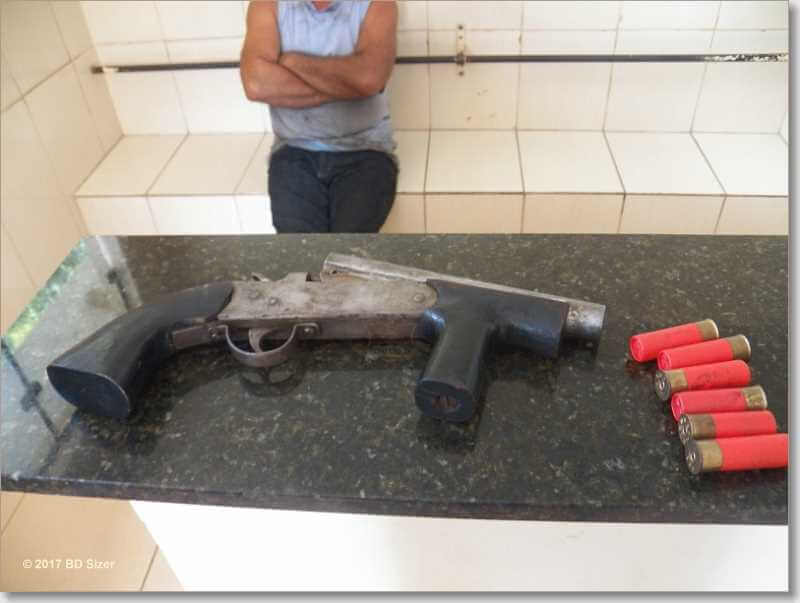 Segundo consta em boletim de ocorrência, os policiais receberam denúncia e foram averiguar a veracidade. Lá na borracharia dentro de um veículo Gol, o qual estava estacionado do lado externo do estabelecimento, mas pertencente ao senhor N.R, de 53 anos, foi localizado uma espingarda calibre 12 e munições.