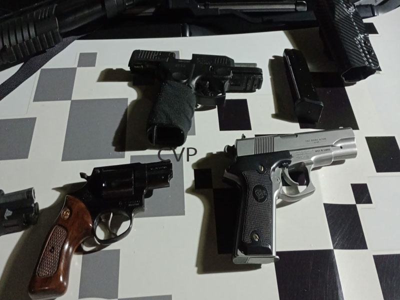 Uma suposta briga de casal, ocorrida nesta noite de sábado, 30-9-2023, em um condomínio na Avenida Miguel Petroni, região do bairro Santa Felícia, acabou em detenções e armas apreendias.