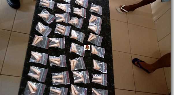 Segundo informações, os soldados Izomar e Vale receberam denúncia que um indivíduo estava traficando e escondia a droga em um terreno baldio ao lado de sua casa. Os policiais foram para o local e segundo os mesmos, eles abordaram o homem com as características passadas e em seu poder foram localizados pinos de cocaína e R$ 32,00. No terreno foram localizados mais cocaína. No total foram apreendidos 84 pinos de cocaína.  No mesmo local um jovem foi detido com uma moto completamente adulterada. O rapaz da moto disse que comprou a mesma e pagou mil reais. Ambos foram encaminhados ao Plantão Policial, ficando à disposição da autoridade policial.