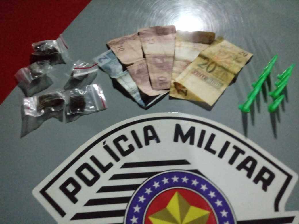 Por volta das 19:30 desta terça-feira, 23 de julho de 2019, na rua Gildiney Carrery, cruzamento com a rua Miltinho Olay, bairro Santa Angelina, São Carlos-SP, a PM deteve um suposto traficante e um suposto usuário de drogas.