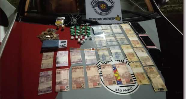 No total foram apreendidos, 29 eppendorfs de cocaína, 8 porções de maconha, 1 balança de precisão, R$ 271,00 em notas picadas diversas e R$ 14,40 em moedas diversas, além de aparelhos celulares.