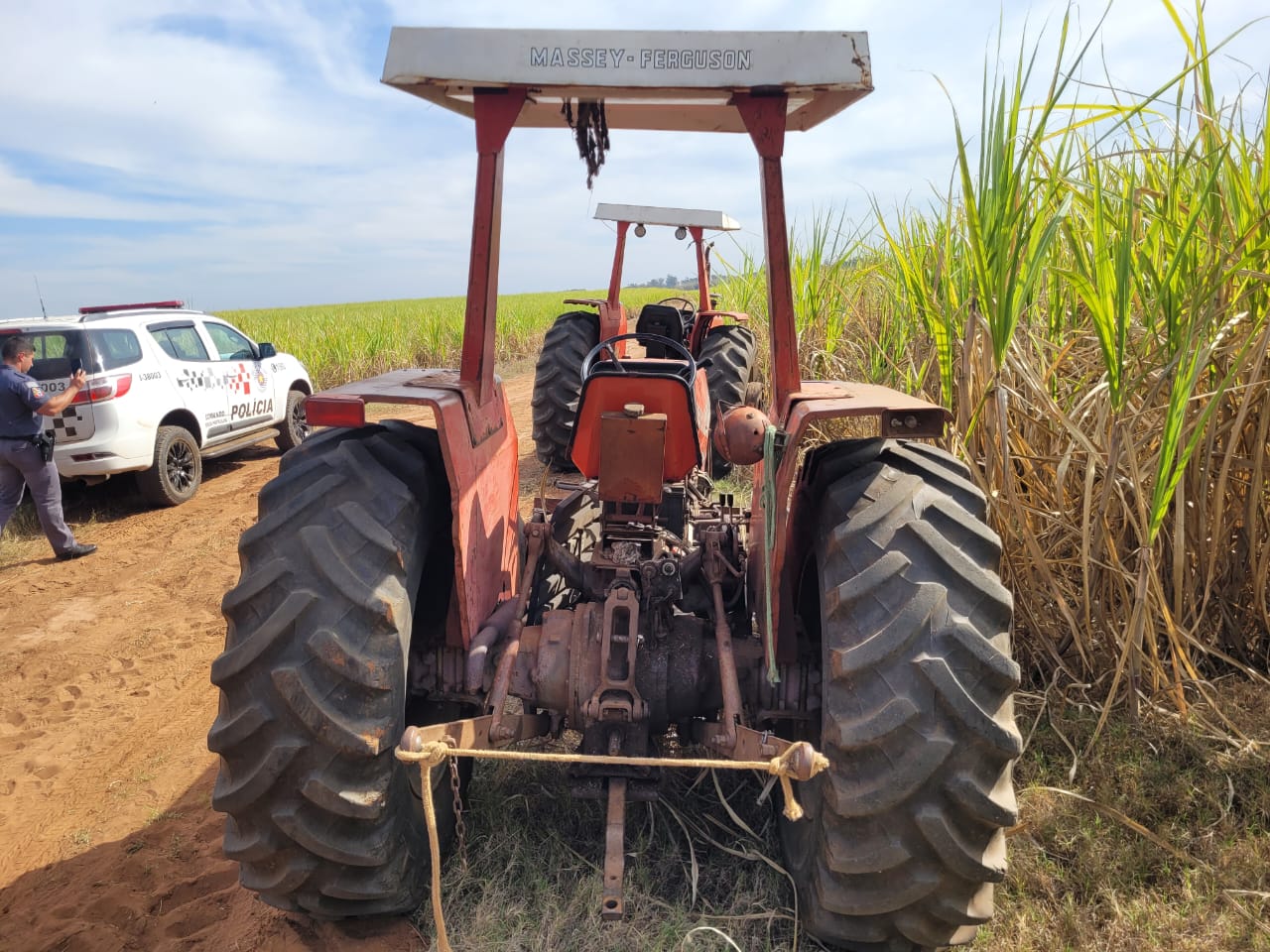 De acordo com informações, a PM foi comunicada, que uma carreta estaria atolada em meio a um canavial em uma fazenda e que o motorista estaria nervoso. Viaturas foram para o local e fizeram contato com N. R. V, idade não informada. Este informou que havia sido contratado para o transportar 03 tratores até Rondônia, e que após carregar os tratores na carreta o veículo ficou atolado em meio a areia. O homem disse que tal contratante havia retirado os tratores da carreta e dito que iria guarda-los, mas não havia retornado. Os policiais desconfiaram da situação e usando drones, encontraram os tratores escondidos em uma plantação de eucaliptos. Dois tratores haviam sido roubados em Ribeirão Bonito e um em São Carlos.