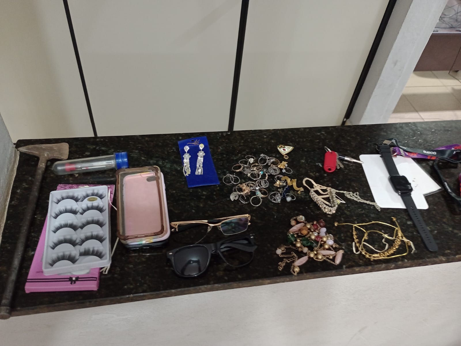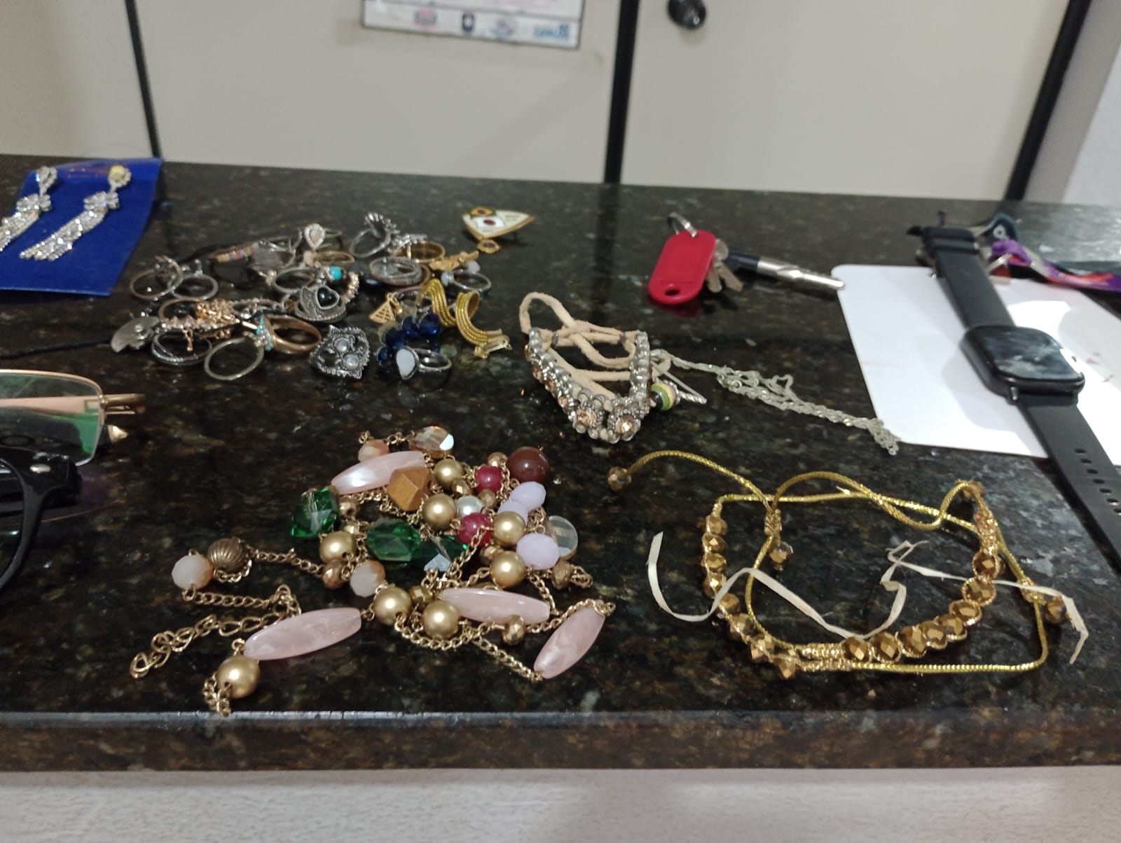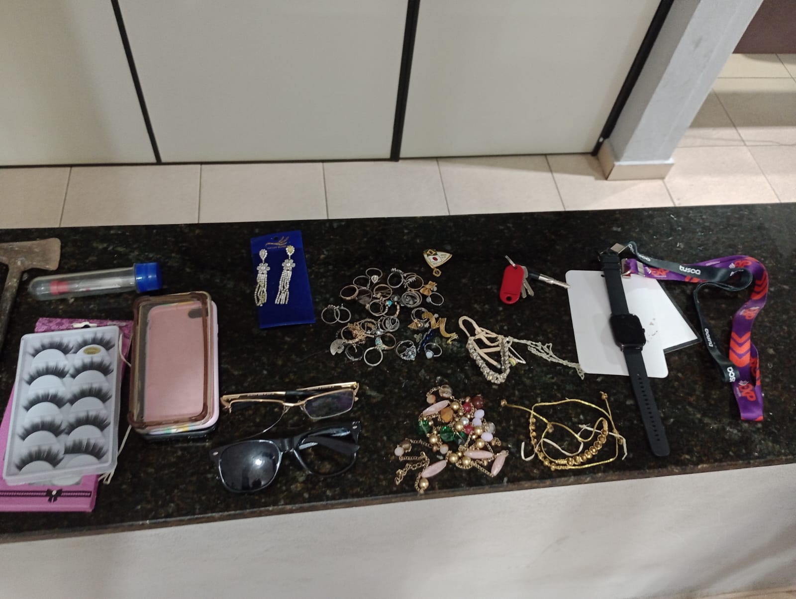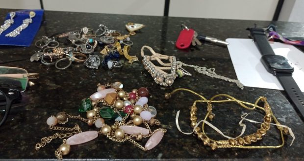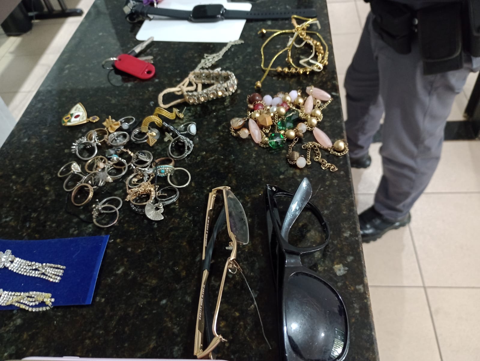 De acordo com informações, policiais militares estavam em patrulhamento, quando resolveram abordar três suspeitos, os quais estavam transitando na via pública. Com um dos averiguados, foi localizada uma bolsa e no interior várias bijuterias, carteira de estudante, entre outros objetos. O abordado disse que achou tais objetos no lixo. A PM encaminhou os objetos para a Central de Polícia judiciária, onde foram apreendidos.