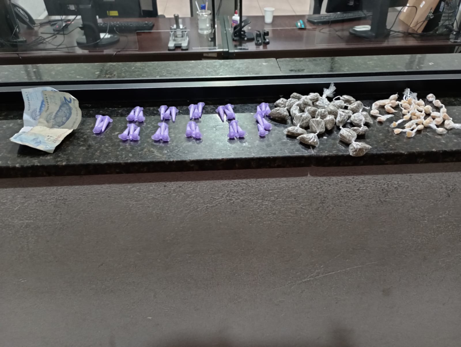Segundo informações, o cabo Lima e soldado Domingos estavam em patrulhamento preventivo, quando avistaram R .L.S, 19 anos, mexendo em algo em um terreno baldio. O suspeito foi abordado e os policiais apreenderam 33 porções de cocaína, 27 porções de maconha e 42 pedras de crack. O abordado foi encaminhado para a Central de Polícia Judiciária, autuado em flagrante por tráfico de drogas e recolhido ao Centro de Triagem de São Carlos.