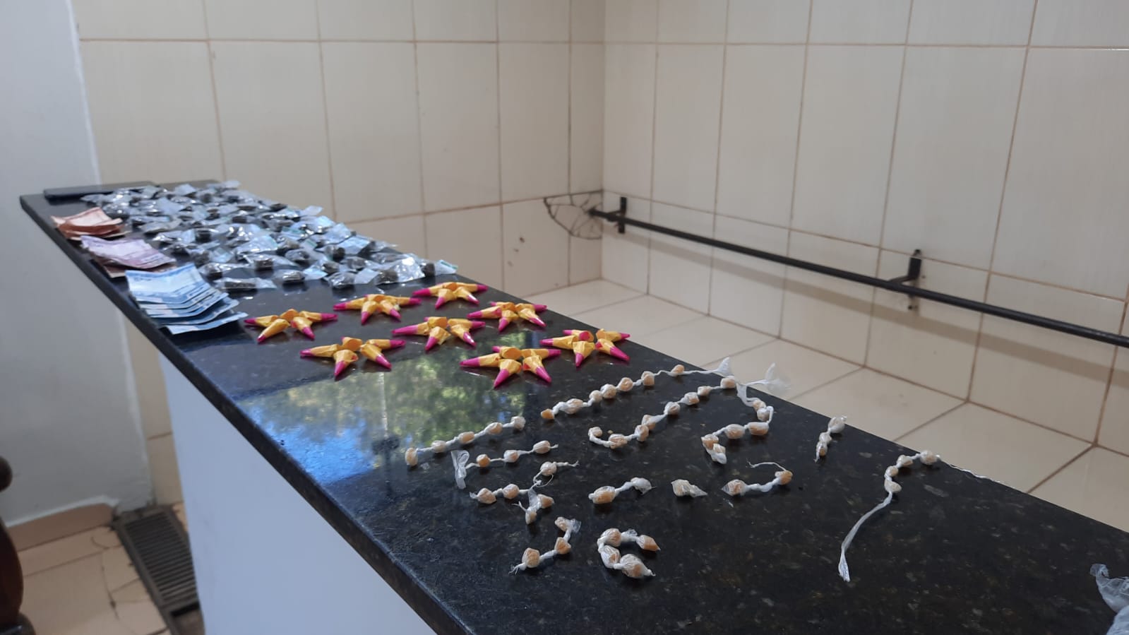 De acordo com informações, policiais do Rádio Patrulhamento avistaram V .H. S, de 20 anos. Ele estaria carregando uma sacola e tentou correr, mas foi detido. Na sacola foram encontrados R$ 62 ,00, 53 pedras de crack, um celular, 40 pinos de cocaína e 58 porções de maconha. O jovem foi encaminhado para a Central de Polícia Judiciária, onde foi autuado em flagrante por tráfico de drogas e recolhido ao Centro de Triagem.