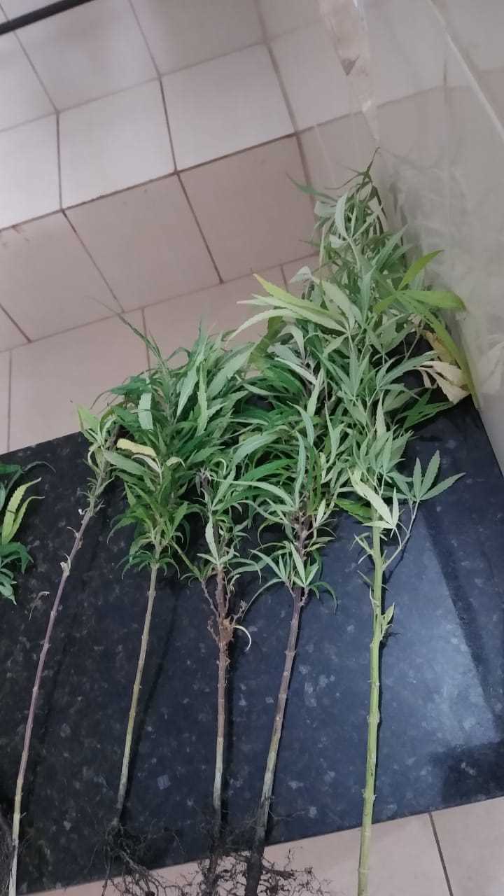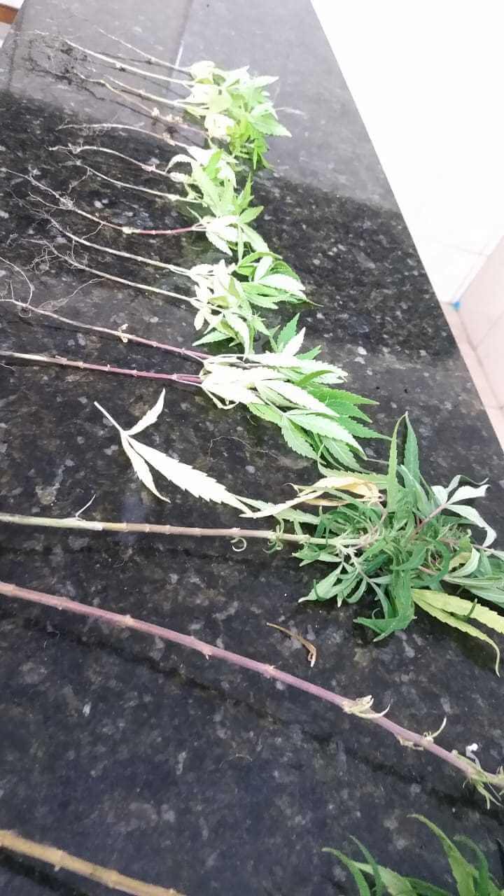 Pela residência foi avistado sete pés de maconha onde foram apresentados no plantão. O averiguado foi encaminhado ao Plantão Policial, onde ficou à disposição da justiça.