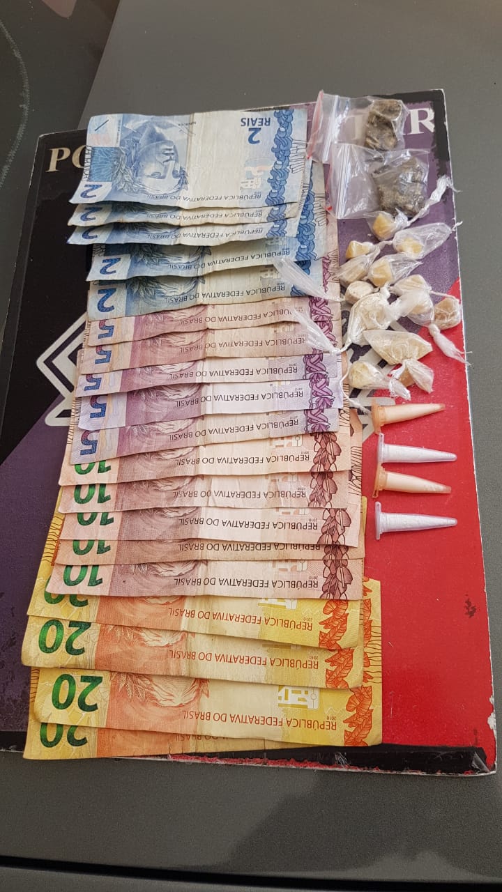 Segundo informações, uma viatura do Rádio Patrulhamento avistou dois indivíduos saírem correndo. Um acabou sendo detido. Drogas e dinheiro foram apreendidos. O averiguado de 20 anos foi encaminhado à DISE, ficando à disposição da justiça.