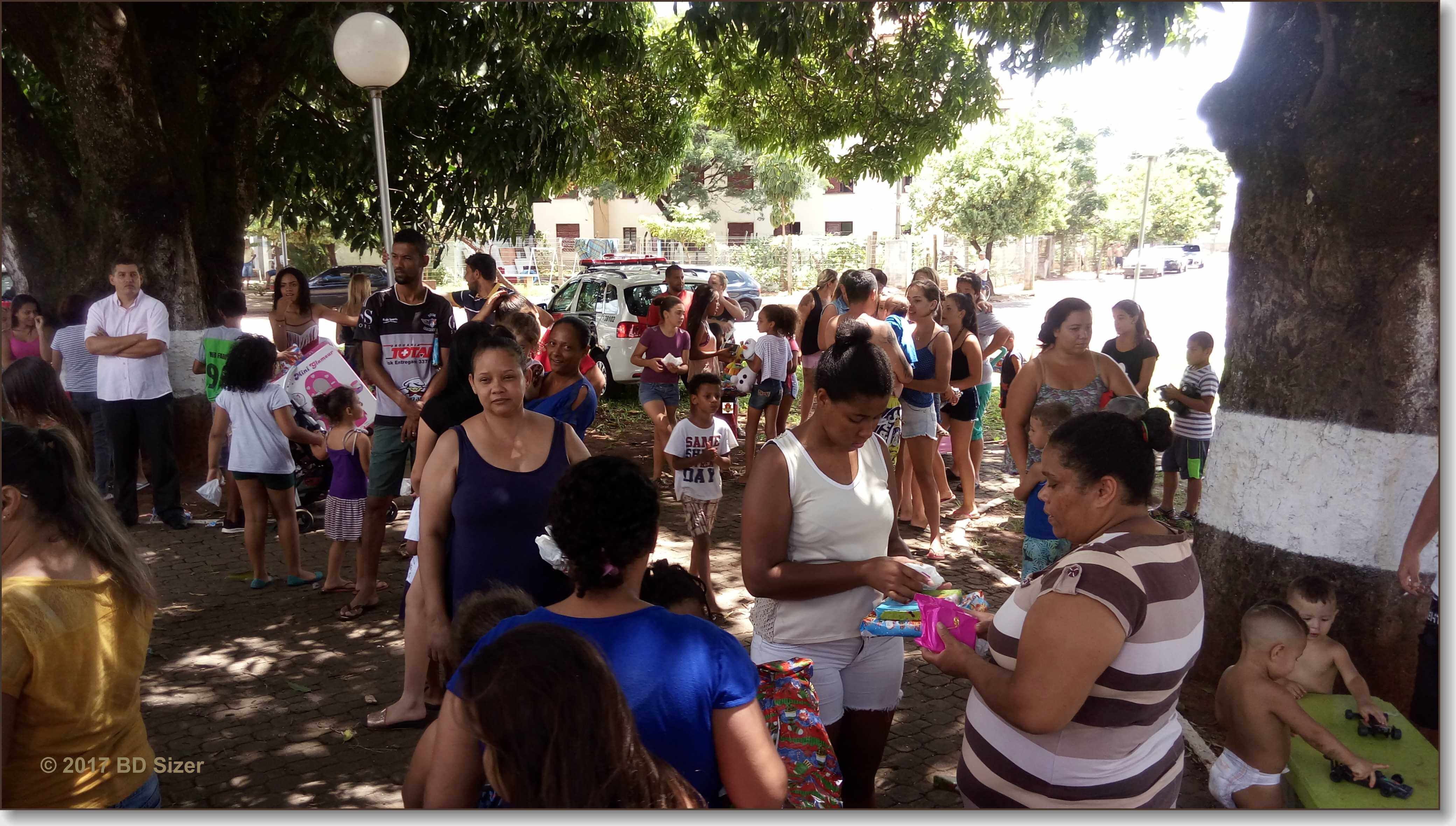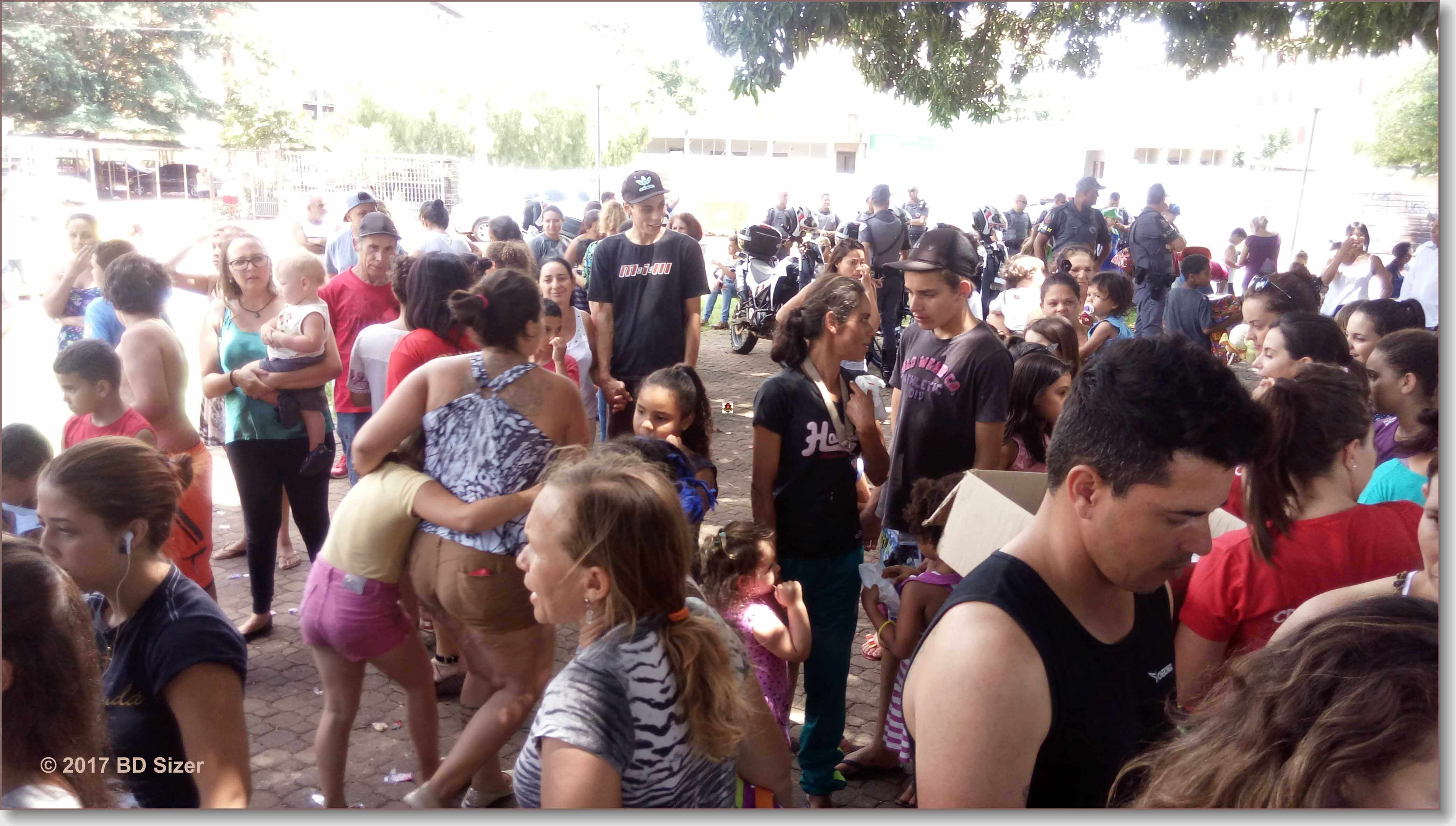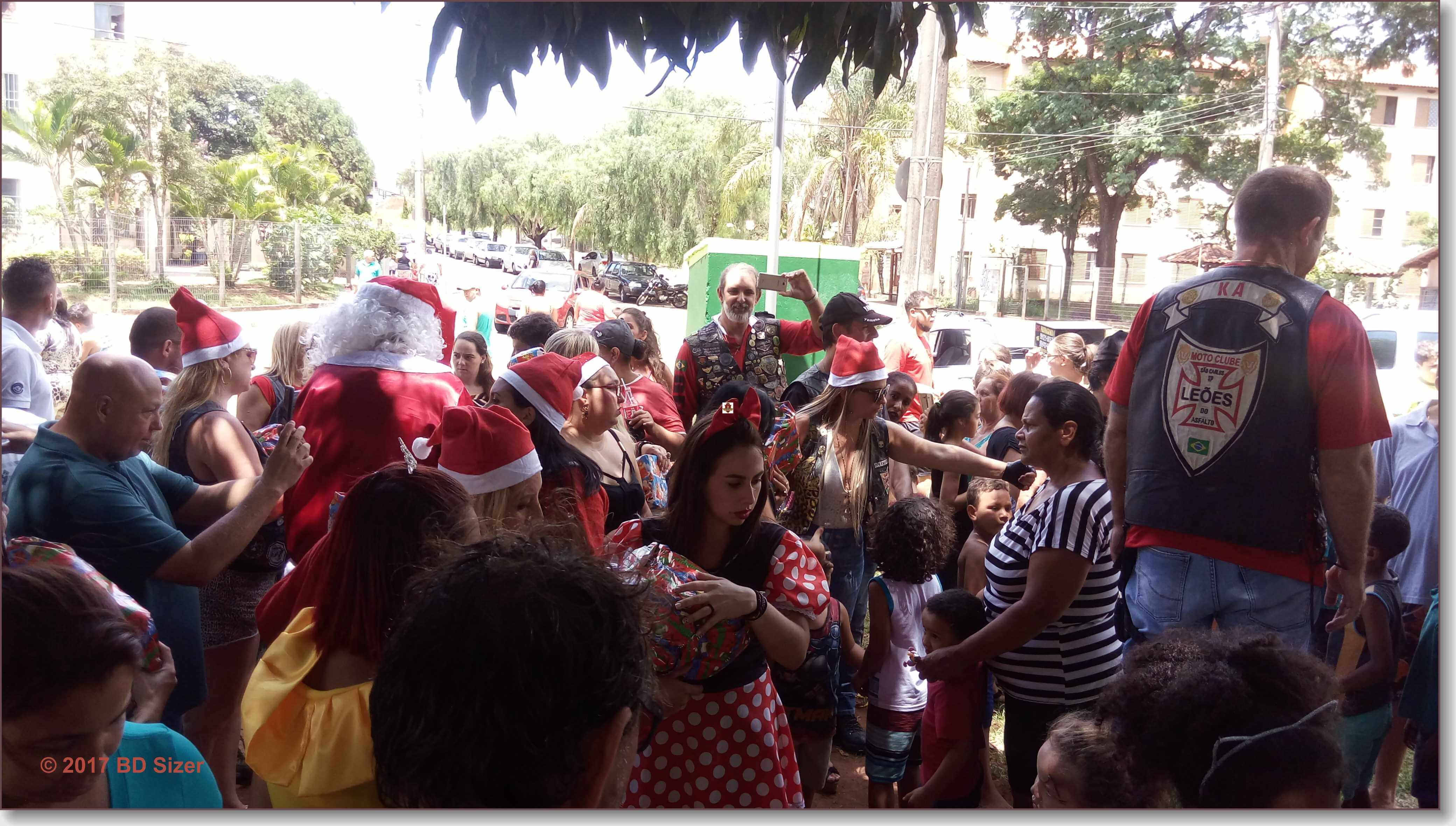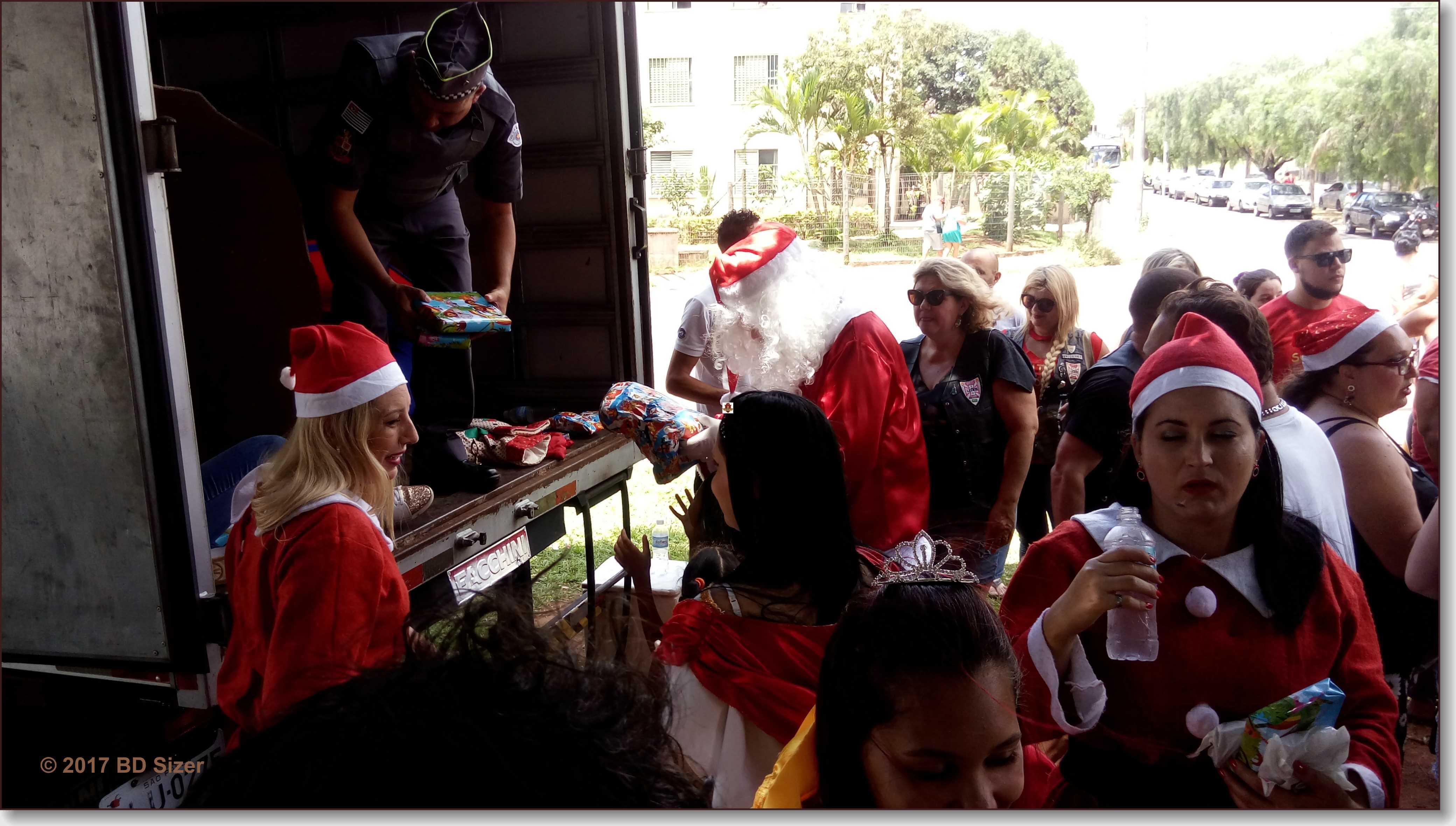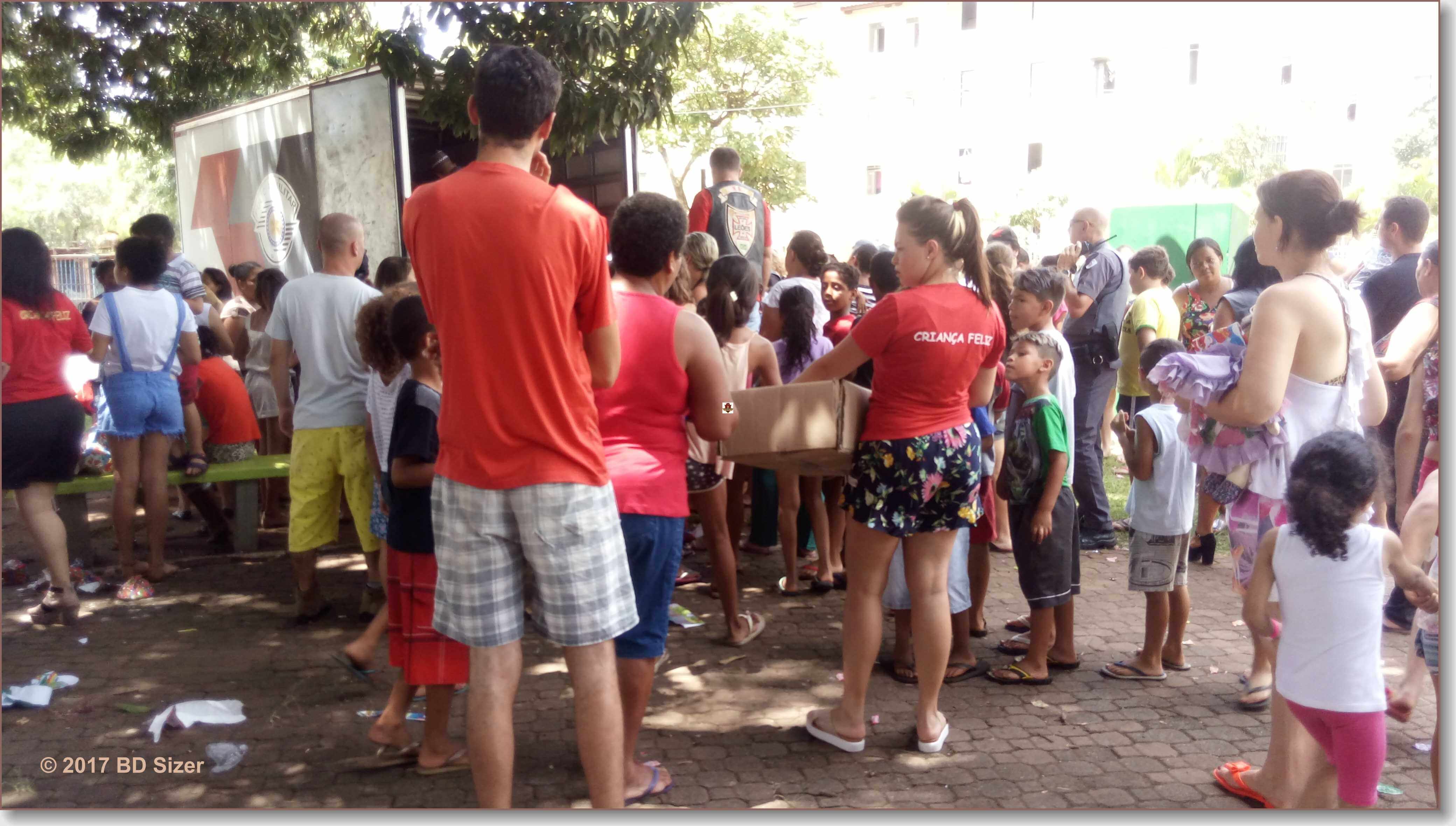 A Polícia Militar de São Carlos-SP, juntamente com uma organização não governamental, fizeram a alegria de dezenas de crianças nesta tarde de domingo, 17-12-2017, no CDHU, bairro de Vila Isabel.