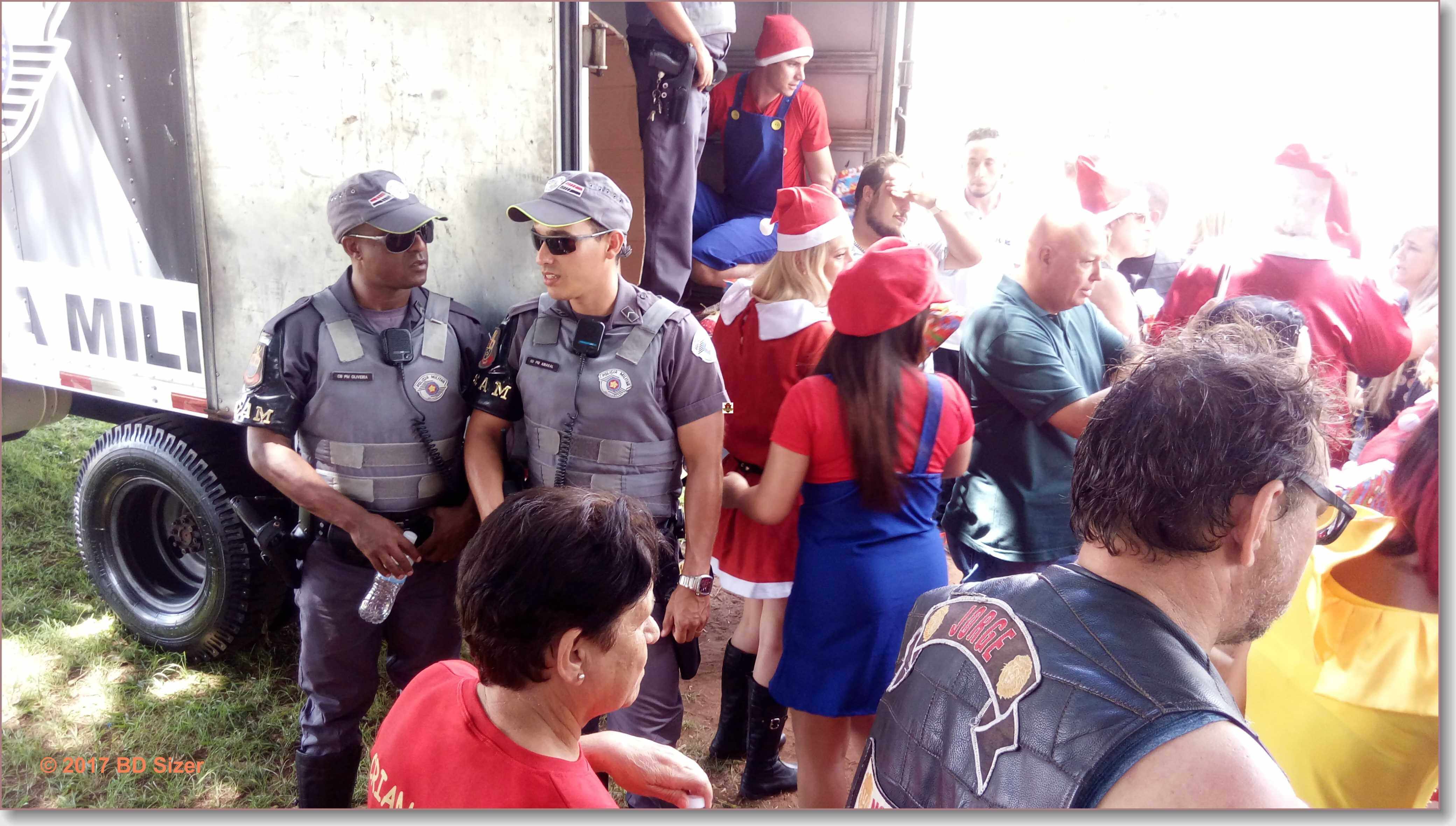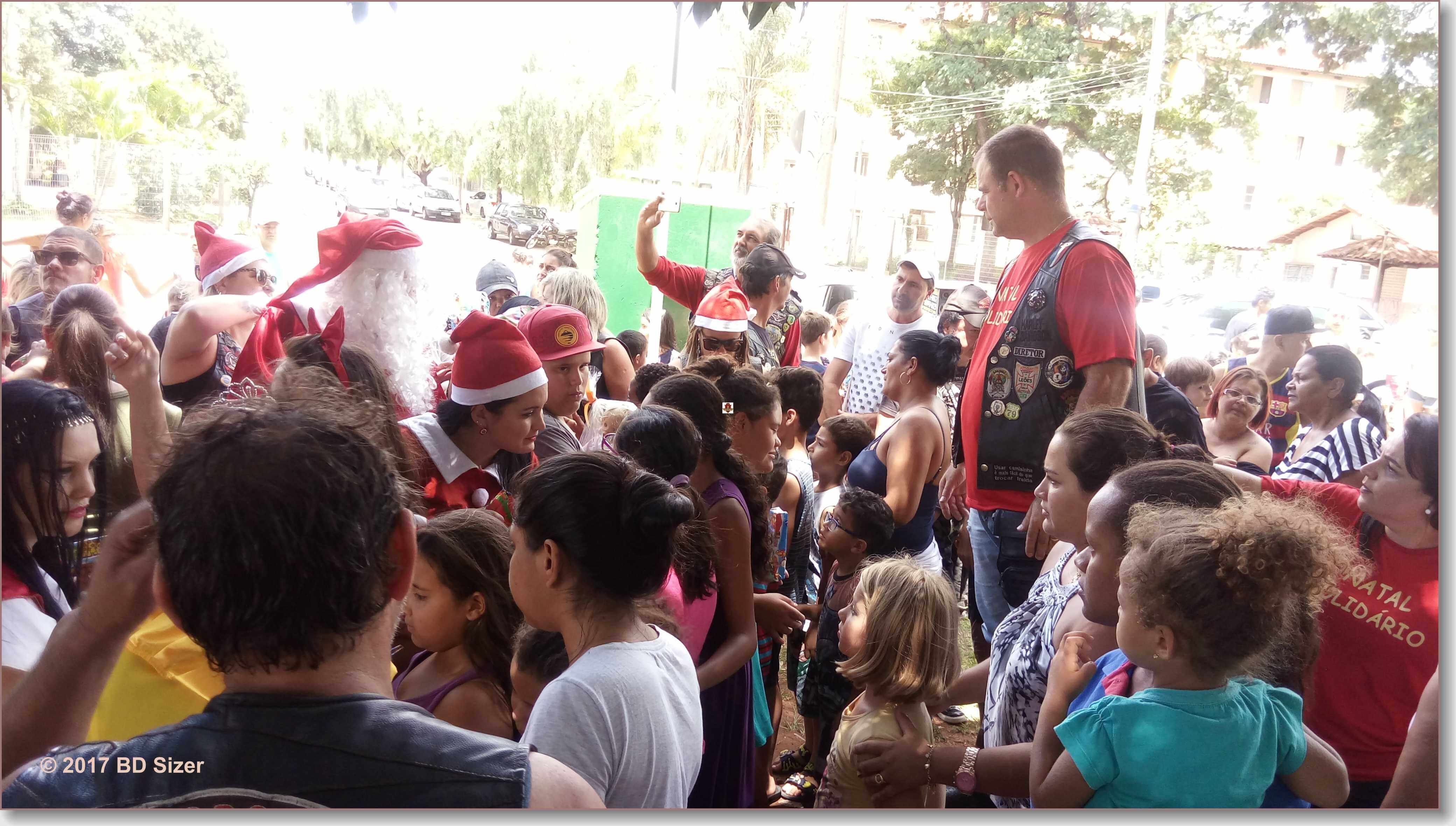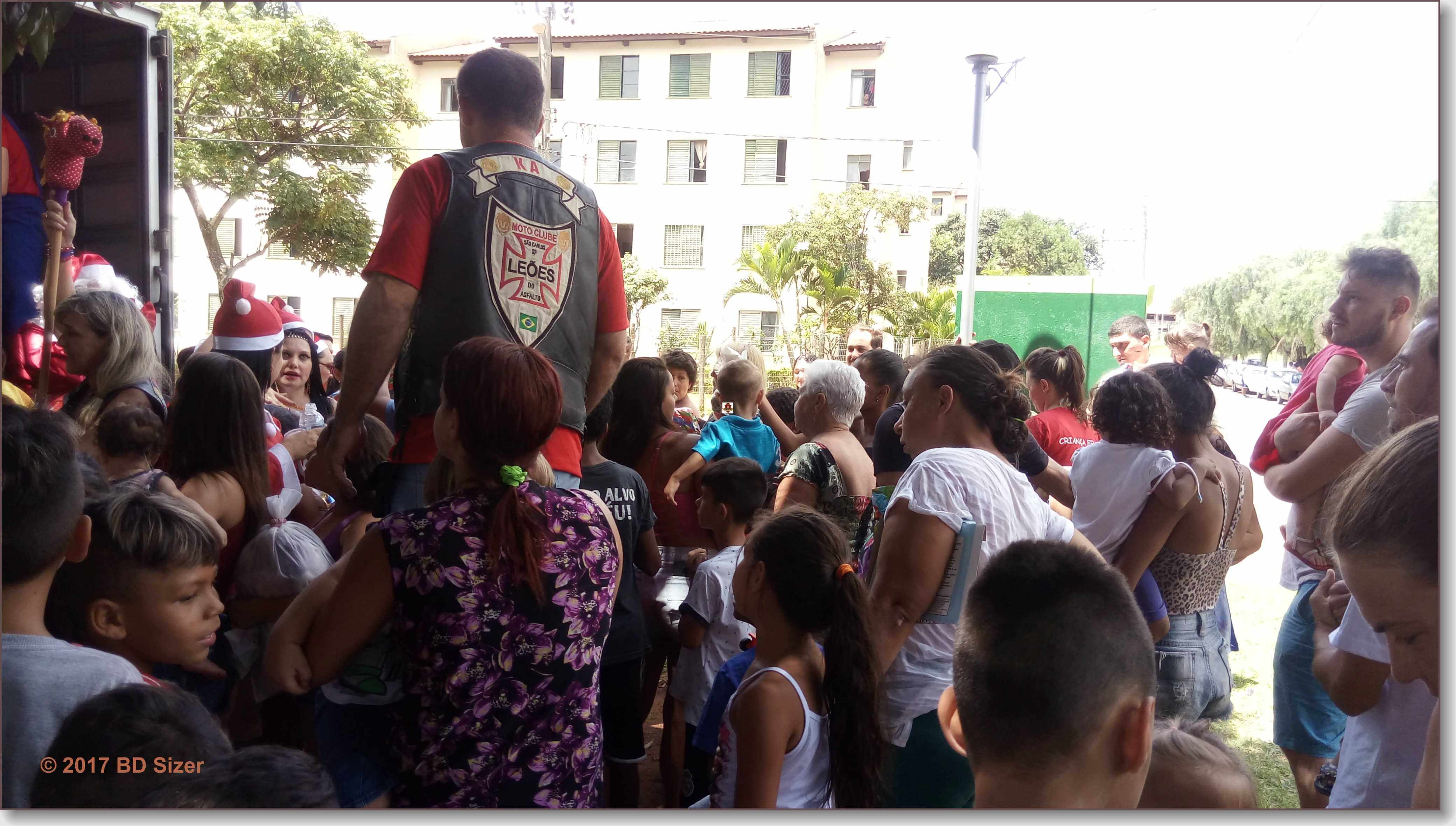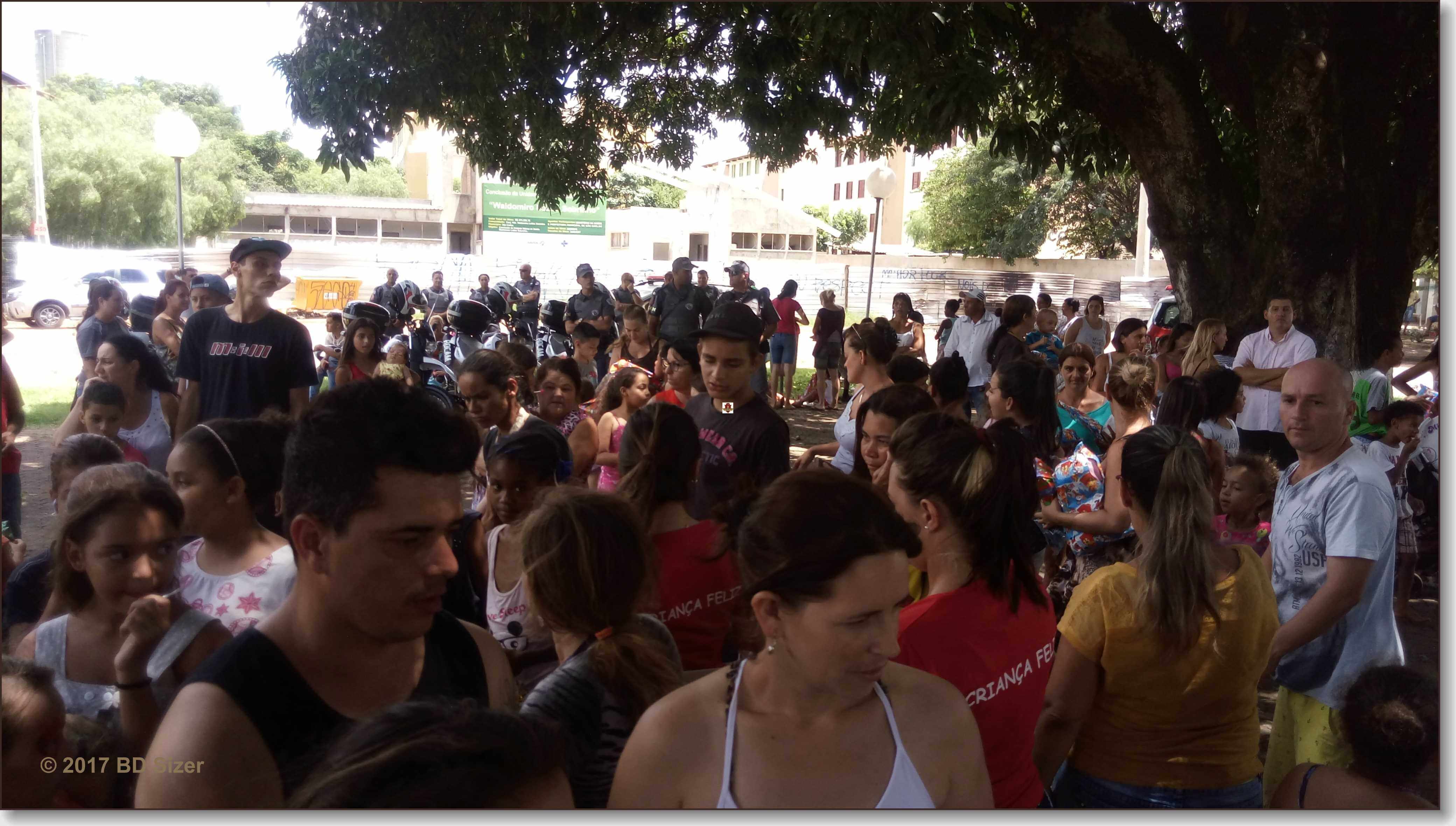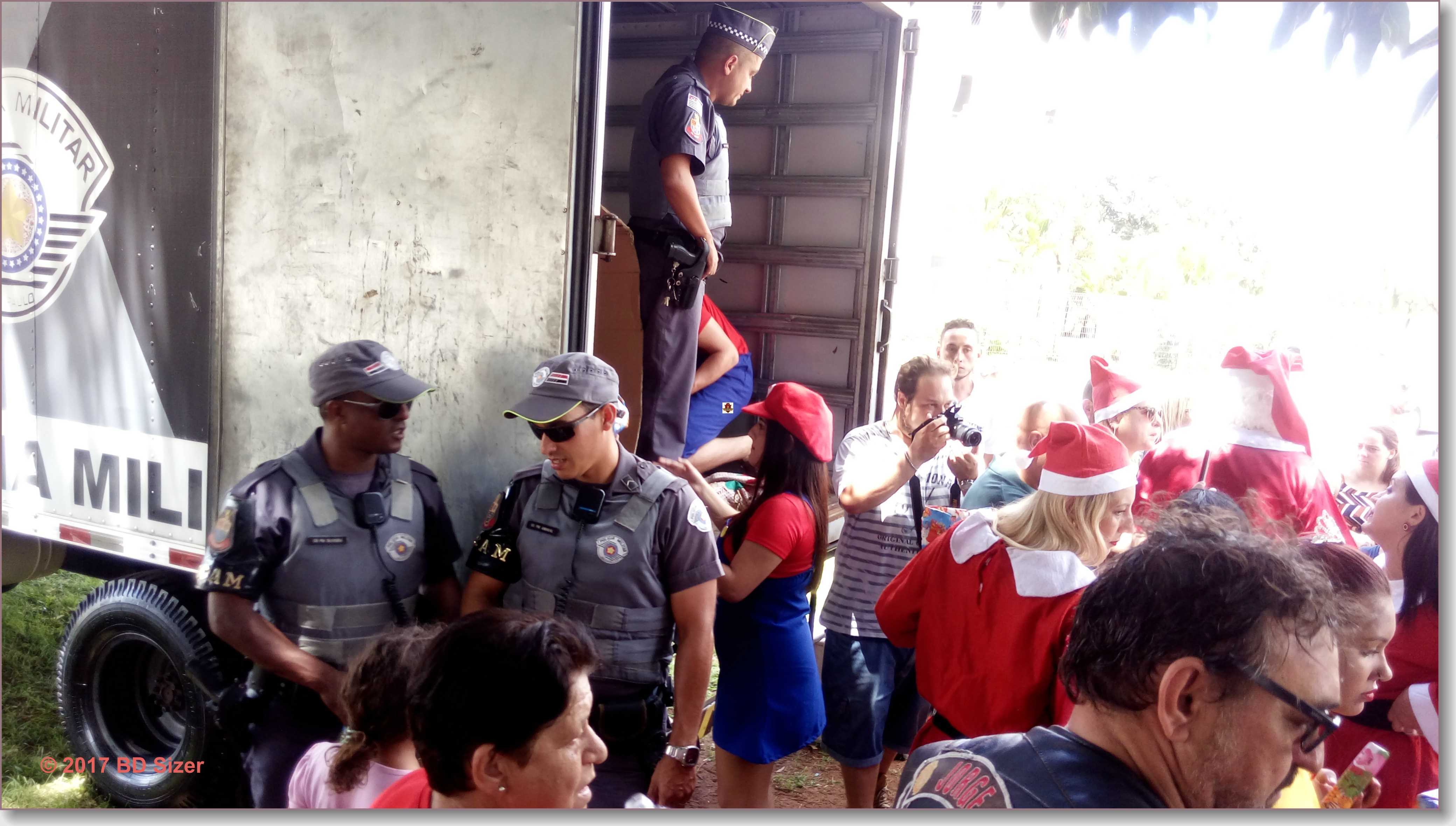 A Polícia Militar de São Carlos-SP, juntamente com uma organização não governamental, fizeram a alegria de dezenas de crianças nesta tarde de domingo, 17-12-2017, no CDHU, bairro de Vila Isabel.