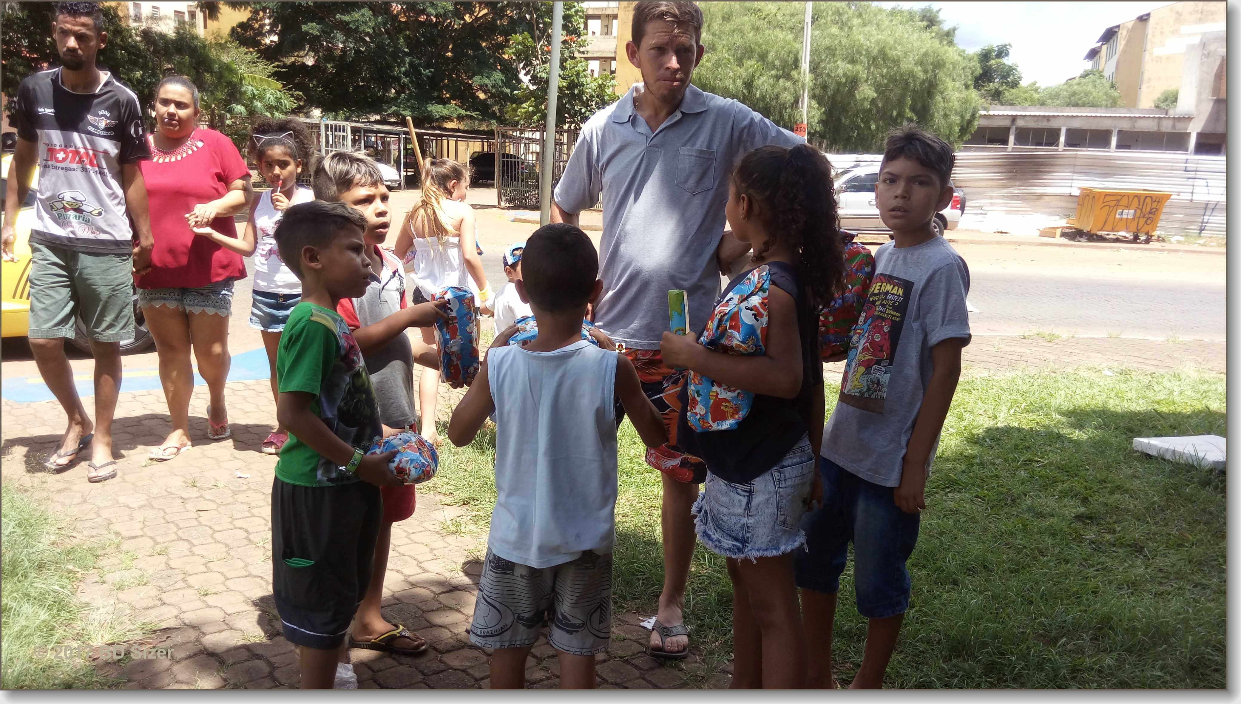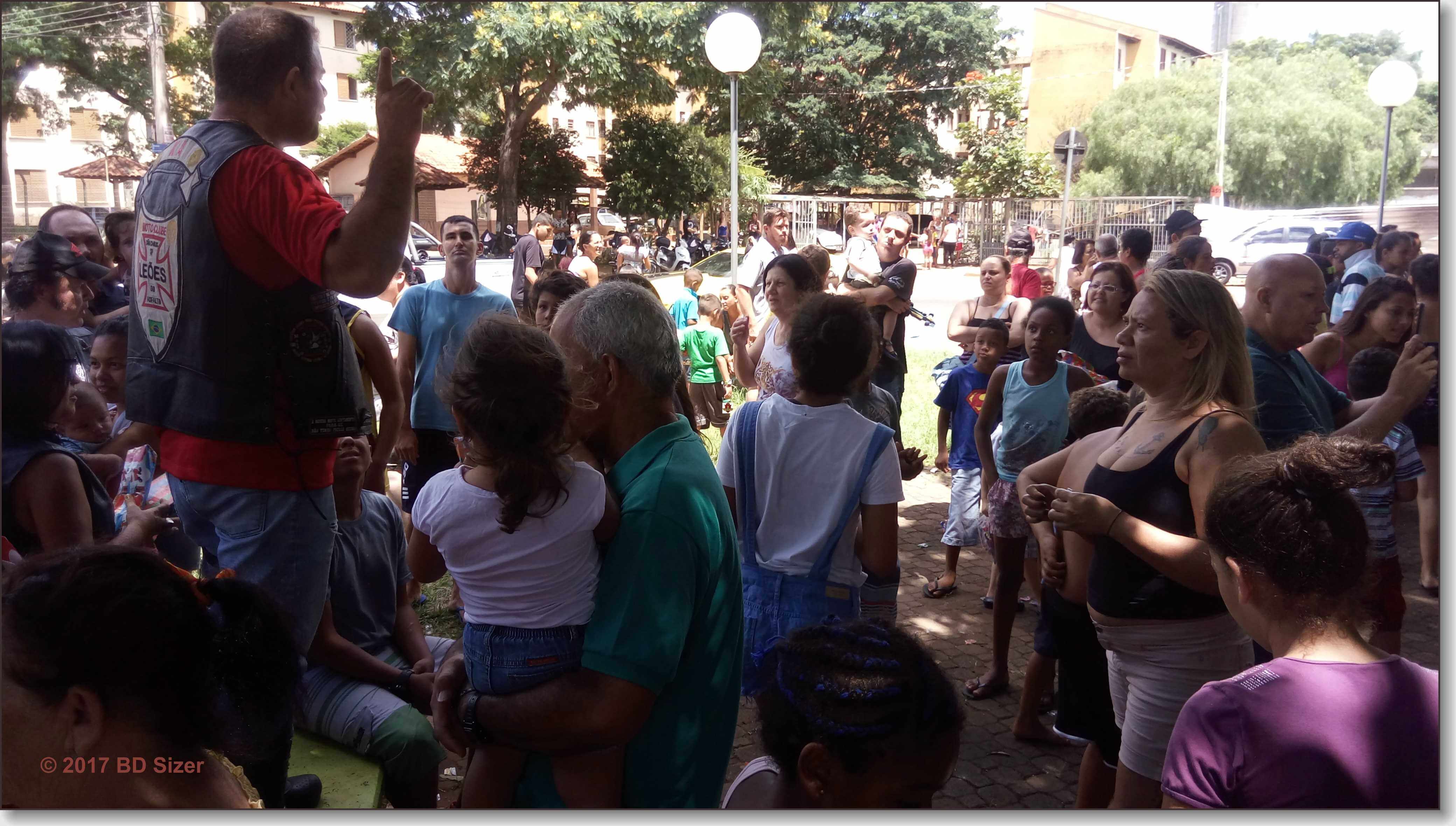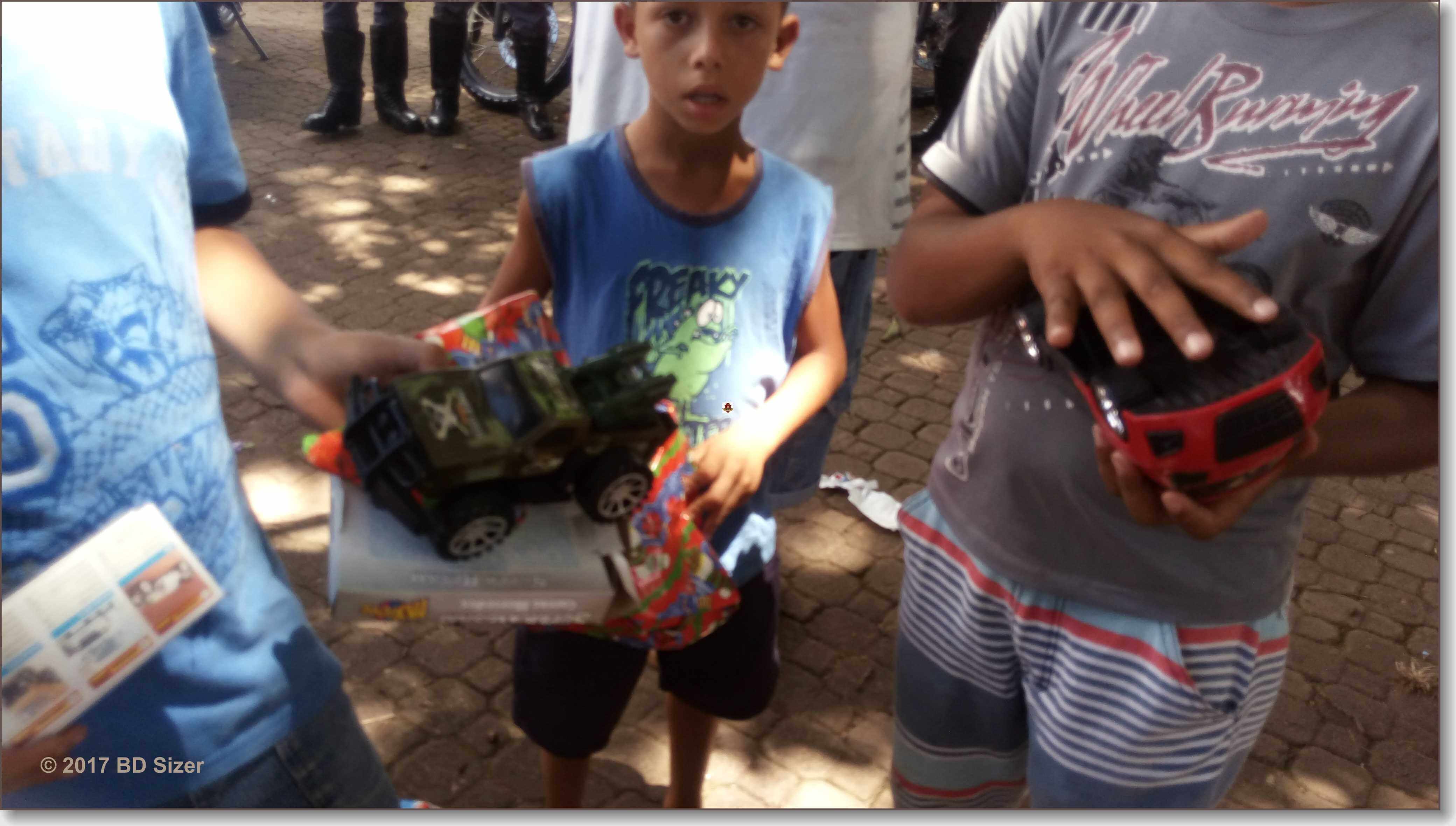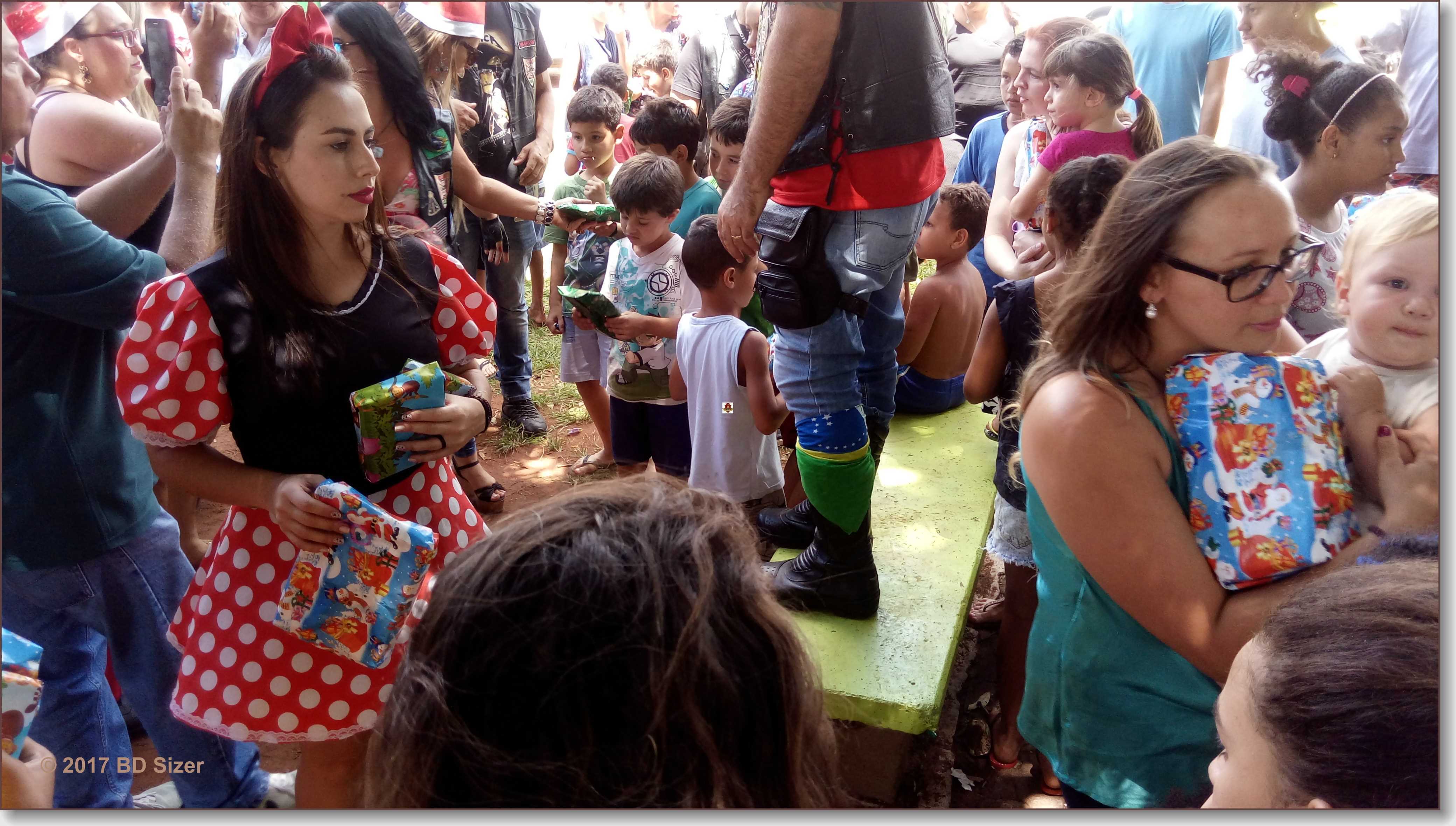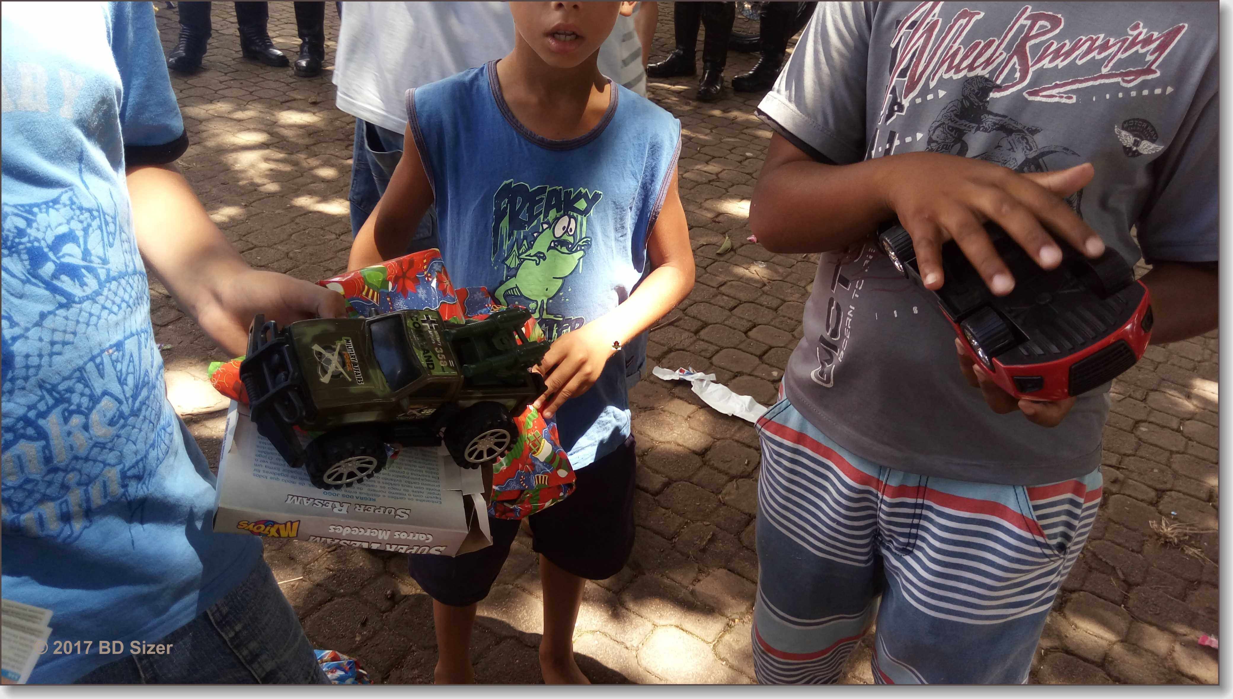 A Polícia Militar de São Carlos-SP, juntamente com uma organização não governamental, fizeram a alegria de dezenas de crianças nesta tarde de domingo, 17-12-2017, no CDHU, bairro de Vila Isabel.
