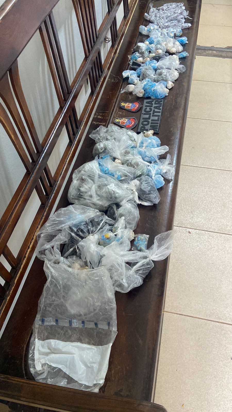 De acordo com informações, policiais militares estavam em patrulhamento preventivo, quando avistaram um indivíduo, o qual fugiu. Dentro de um imóvel abandonado, foram localizados  1,835 gramas de maconha , 330 gramas de crack, 320 gramas de haxixe, 131 gramas de ice e