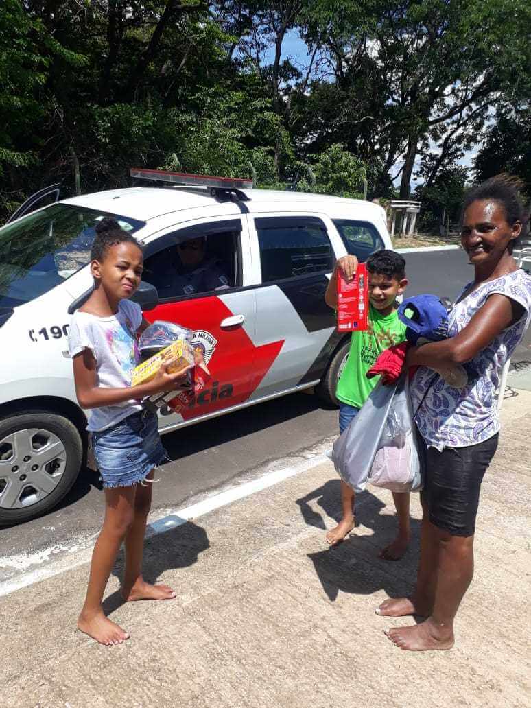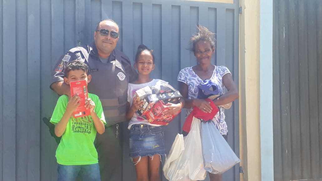 Os cabos BRUSCHI CB LUCIANO compraram presentes e fizeram a surpresa para o garoto, que segundo a PM, tem uma deficiência.