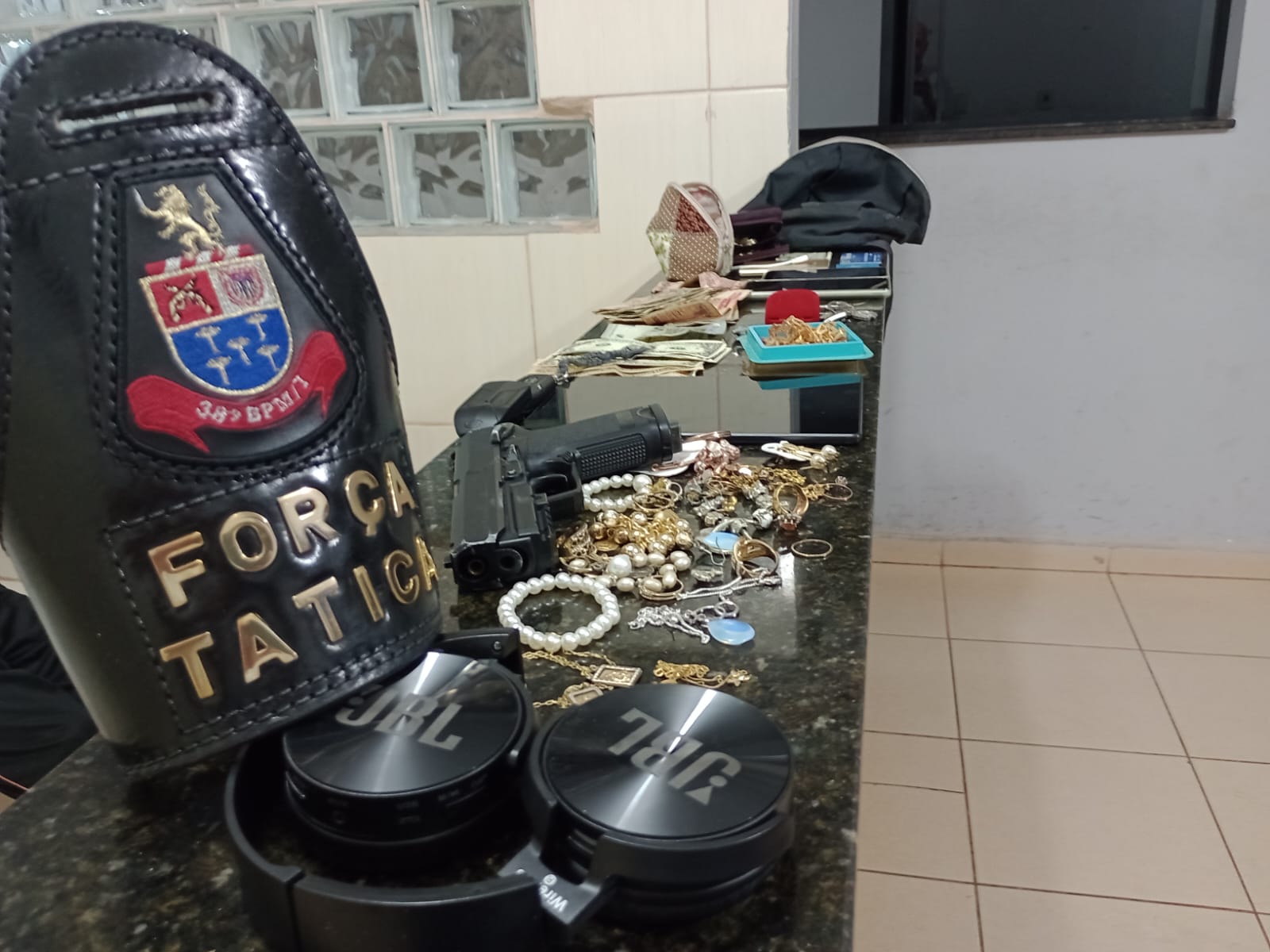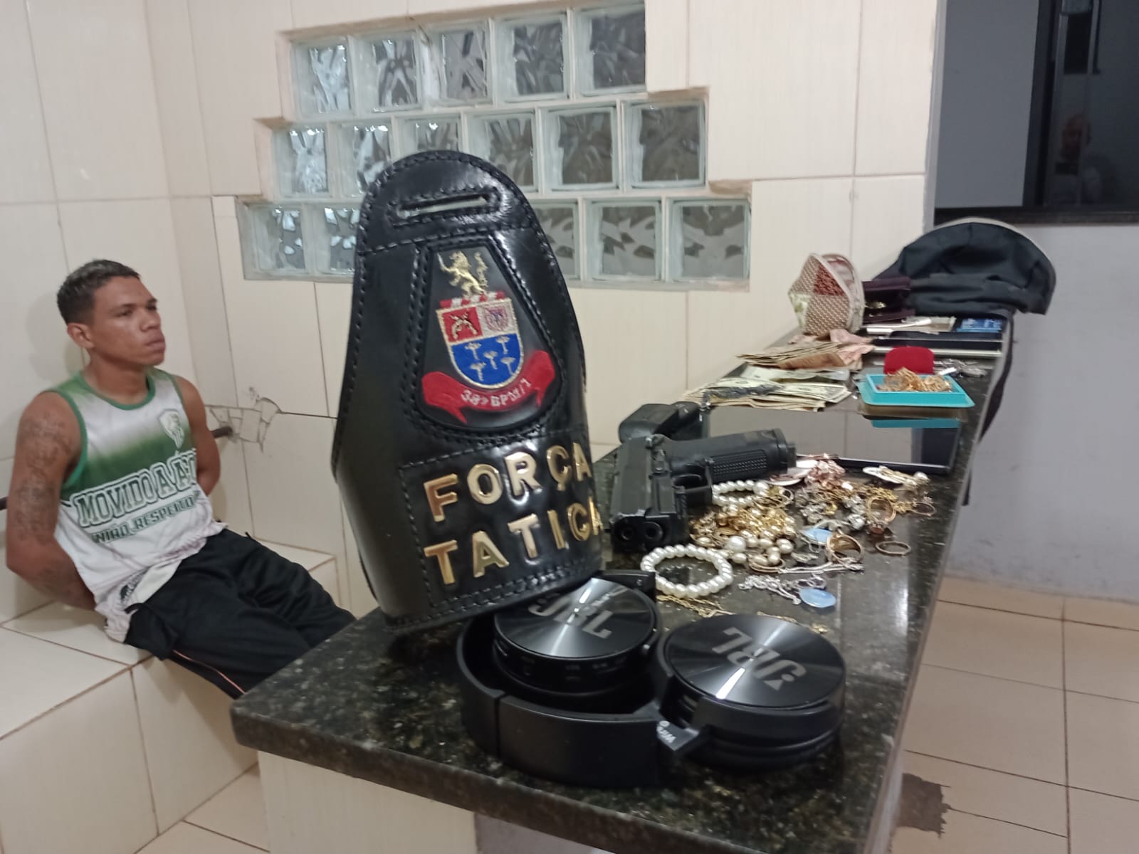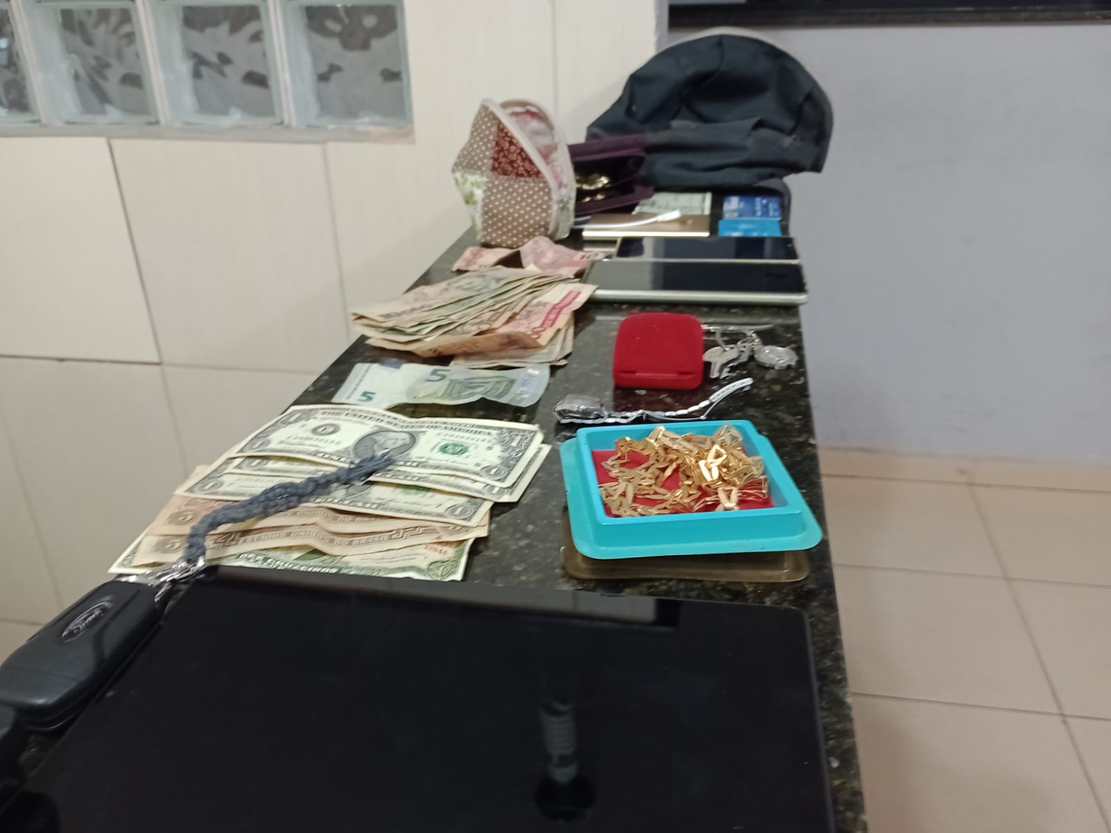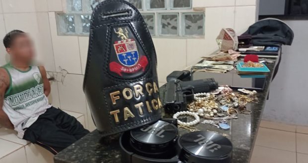 Segundo informações, F.A.S, de 21 anos, o qual mora no bairro São Carlos VIII, em poder de uma réplica de arma de fogo, teria rendido uma senhora de 65 anos, a qual estaria chegando em casa. O bandido adentrou no imóvel e rendeu as outras duas moradoras, de 68 e 86 anos. O criminoso trancou as vítimas em um cômodo, mas uma conseguiu acionar a PM. As equipes de Força Tática, comandadas pelo capitão Rodrigo Della Nina, fecharam o cerco e o bandido foi detido quando tentava deixar o imóvel. O bandido estava levando os objetos do roubo, como Dólares, joias e Reais. O criminoso foi encaminhado para a Central de Polícia Judiciária, onde foi autuado em flagrante por roubo e recolhido ao Centro de Triagem de São Carlos. Ele teria dito que estava devendo drogas para traficantes e por isso foi roubar para quitar a dívida.