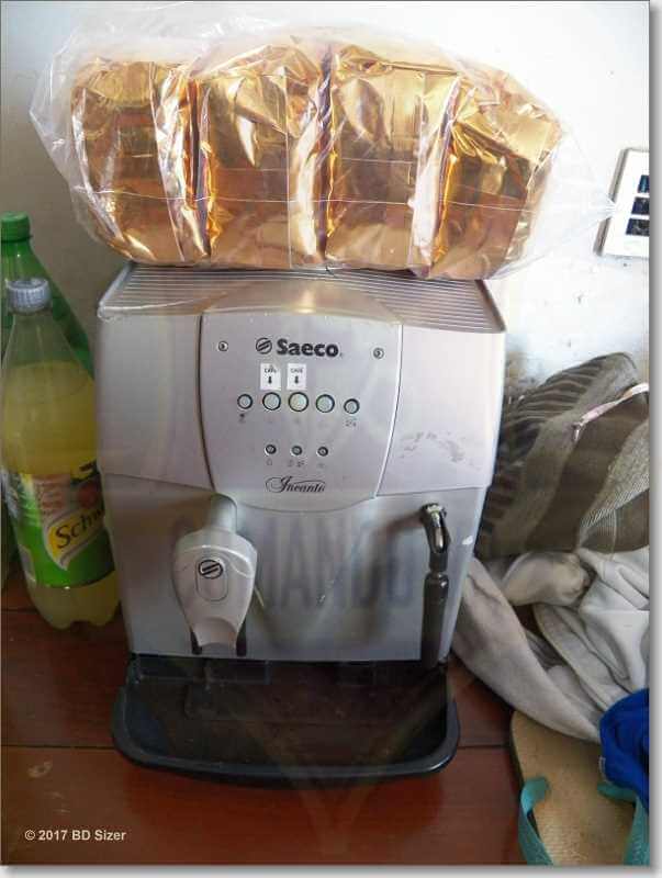 Depois os mesmos policiais Romão e Hurbano localizaram um Santana que havia sido furtado durante a noite anterior. Neste Santana a PM localizou uma máquina de café, refrigerantes, sacos de pó de café, entre outros objetos furtados na noite de ontem, 02-01-2017, de uma lanchonete no bairro Paulistano.