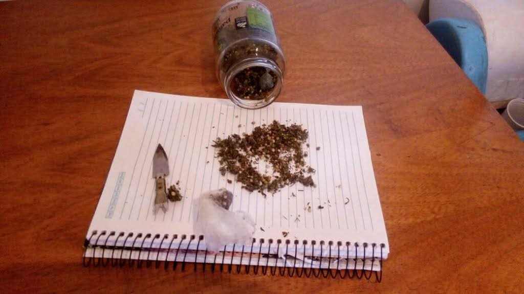 Segundo boletim de ocorrência, através de uma denúncia, a PM foi até a chácara e quando os policiais lá chegaram, um indivíduo, branco, magro, calvo, com barba, trajando camiseta regata da cor azul correu e conseguiu fugir. O local está sendo construído um imóvel. No quintal foram localizados cinco pés grandes de maconha. Dentro da construção, foram localizadas folhas secas de maconha dentro de um saco e várias ferramentas de procedência duvidosa. Os PMs da Base Comunitária, com apoio de policiais da ROCAM, tinham conhecimento que o proprietário da chácara morava na rua Danti Petroni Galli, bairro Santa Felícia. Para lá foram alguns policiais que fizeram contato com K.F.A, de 24 anos, companheira do suspeito. Os PMs informaram o motivo da visita e pediram para olhar o imóvel. A mulher franqueou a entrada e ainda de acordo com boletim de ocorrência, no armário da cozinha foram localizados 5 vidros contendo maconha e sementes da mesma droga. Foi localizado também caderno com anotações. A mulher disse aos policiais que todo aquele material era de seu marido Everton A. V, de 24 anos. Mas, segundo a mesma, ela desconhecia que ele tinha uma chácara. O indivíduo não estava na residência e a esposa gestante de 9 meses foi conduzida à Delegacia de Investigações Sobre Entorpecentes (DISE), onde foi qualificada como averiguada e liberada. Toda a droga e os materiais relacionados a tráfico foram apreendidos na DISE, as ferramentas foram encaminhadas ao Plantão Policial e apreendidas. A Polícia Técnica esteve no local onde havia a plantação da maconha. O indivíduo deverá ser investigado pela DISE, comandada pelo delegado Dr. Edmundo Ferreira Gomes.