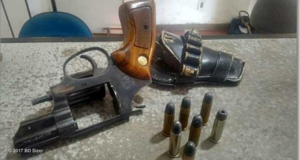 Marcos Alexandre, foi encaminhado ao 1º D.P, autuado em flagrante por porte de arma de fogo, ficando à disposição da autoridade policial.
