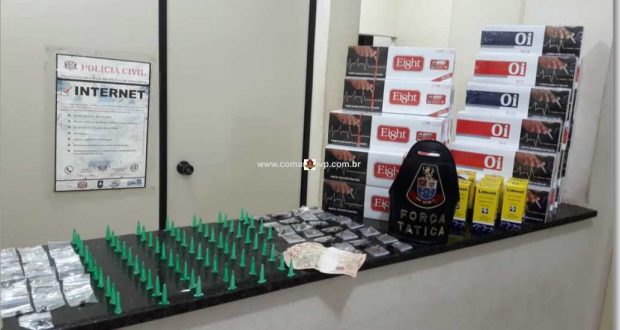Segundo informações, a equipe  estava em patrulhamento  pelo bairro Arnon de Mello, quando os policiais abordaram um indivíduo.  Em  uma sacola que o mesmo carregava foram localizados  65 eppendorfs de cocaína e a quantia de R$ 230,00.  Este  informou que em sua residência havia mais drogas. No local foi realizado vistoria no imóvel, encontrado no guarda roupas 19 porções de haxixe, 25 porções de Skank, 38 pacotes de cigarro e 8 frascos/ampolas de anestésico veterinário utilizado para batizar a droga.