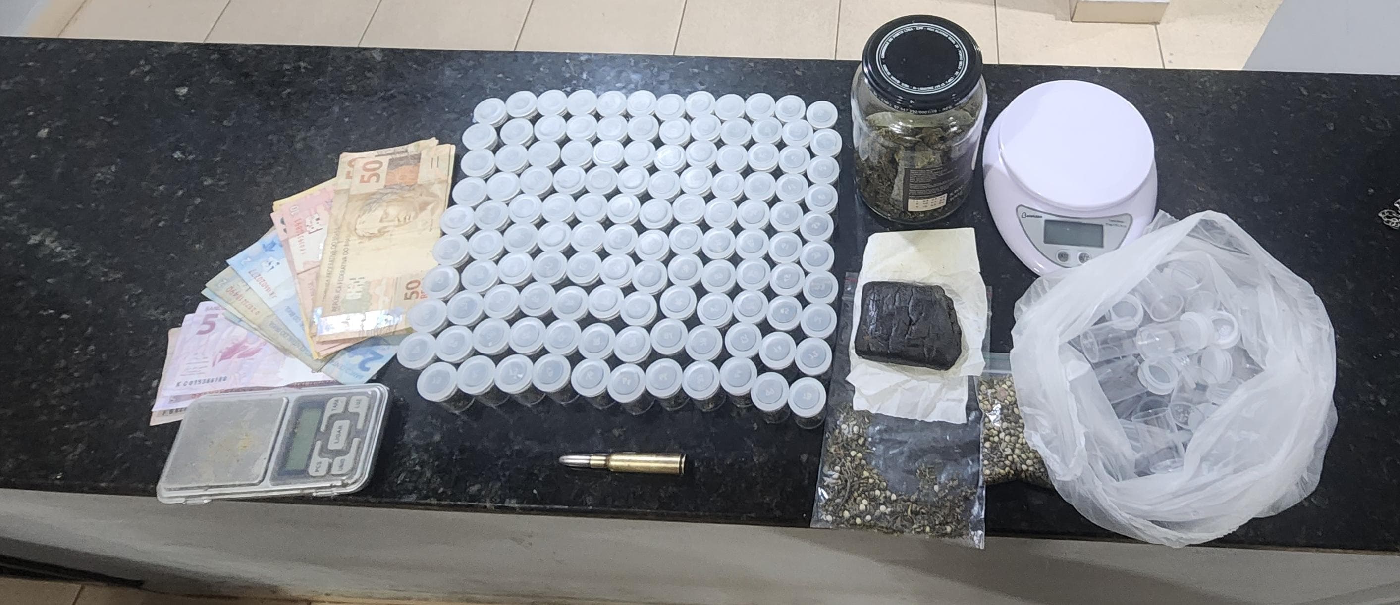 De acordo com informações, a PM recebeu denúncia, que no bloco seis, havia drogas e arma em um apartamento. Os policiais foram para o local e em contato com S.M.M.S, ele acabou confessando que guardava drogas no apartamento. Além das drogas foi localizada também uma munição de fuzil. O sujeito, que segundo a PM, saiu há três meses da cadeia pelo crime de tráfico de drogas, foi encaminhado para a Central de Polícia Judiciária e recolhido ao Centro de Triagem de São Carlos.