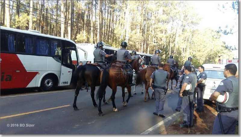 São várias equipes da PM que estão no local para que os invasores deixem as terras, que segundo informações, pertencem ao governo do estado.