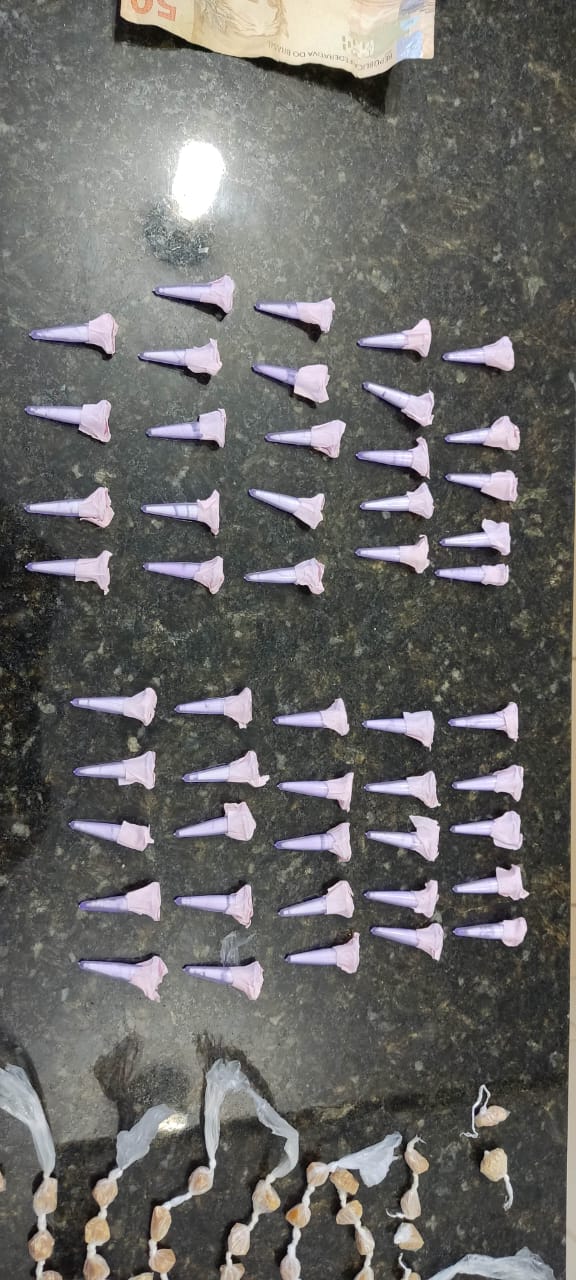 De acordo com informações, o 190 foi comunicado, que um indivíduo trajando camiseta e boné azul, estaria vendendo drogas neste local. Os policiais cabo Souza e soldado Alex foram para o local e detiveram  R.L.L, de  19 anos.  Os policiais apreenderam 16 invólucros de maconha,  34 Pedras de crack , 49 pinos cocaína e cinquenta reais.  O detido foi encaminhado para a Central de Polícia Judiciária, autuado em flagrante pelo delegado, Dr. Edmundo Ferreira Gomes e recolhido ao Centro de Triagem de São Carlos.