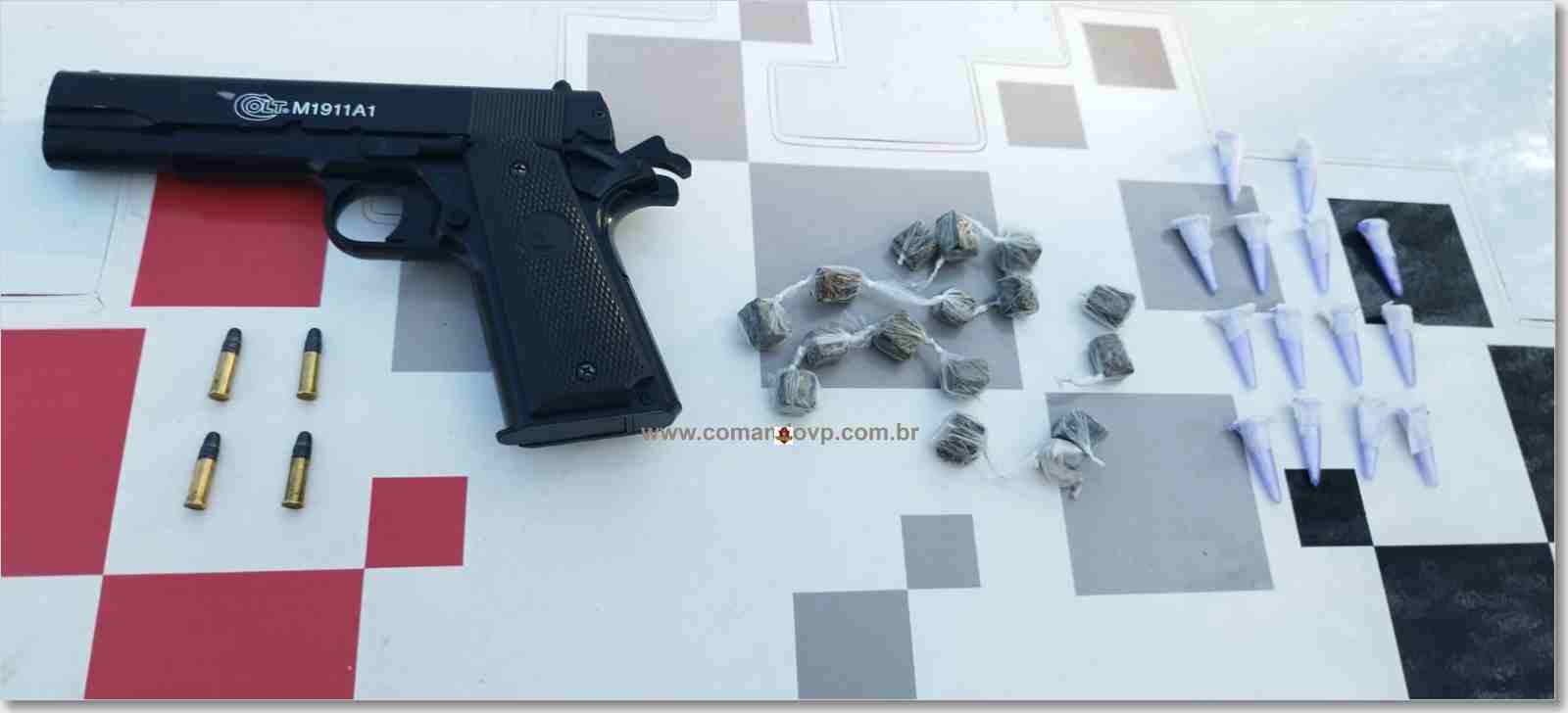 De acordo com informações, o Centro de Operações da Polícia Militar recebeu denúncia que dois indivíduos estavam transitando em uma moto na citada região. Em patrulhamento os policiais avistaram a moto e deram ordem de parada, mas o condutor desobedeceu. Foi dado início acompanhamento e o condutor da moto se desequilibrou e caiu. Após a queda, um dos jovens ainda resistiu a abordagem. Com um dos abordados foram localizados 14 invólucros de cocaína. A moto estava com queixa de roubo, fato ocorrido no dia 16-08, deste presente ano. O menor disse que sabia que a moto era roubada e que havia adquirido a mesma na região do CDHU. O jovem disse ainda que na sua casa tinha munições e um simulacro de arma de fogo. Os policiais se deslocaram até a casa do menor e com autorização da mãe, vistoriaram o quarto dele, onde encontraram 4 munições de calibre 22, todas intactas e uma réplica de pistola. O outro menor disse que não sabia que a moto era roubada. A ocorrência foi encaminhada para a Central de Polícia Judiciária, onde o menor de 15 anos foi encaminhado para a Fundação Casa de Araraquara. O outro menor ficou à disposição da família. A moto roubada foi devolvida para a vítima.